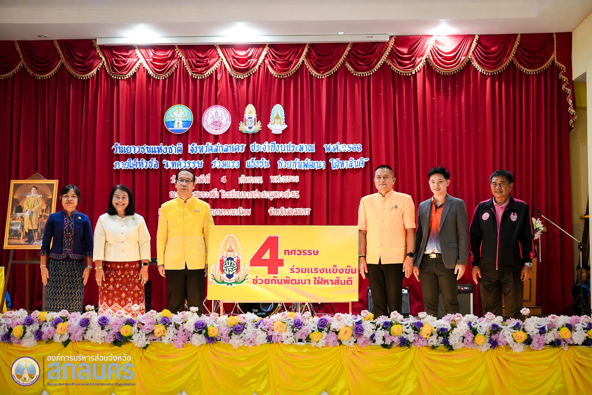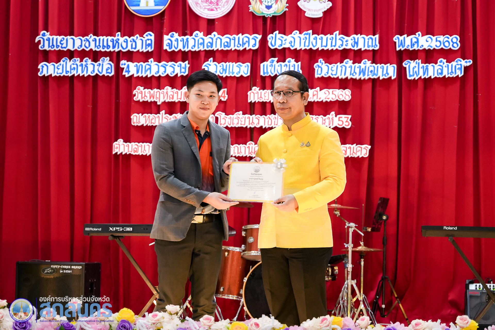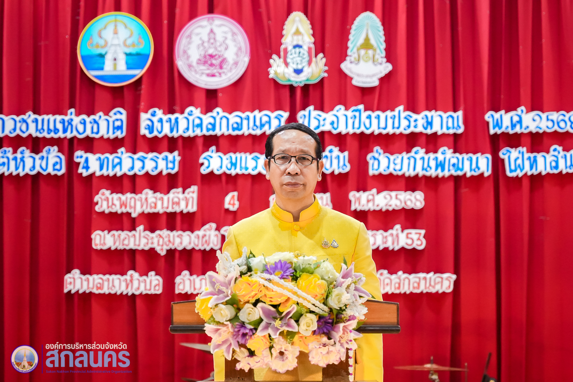 องค์การบริหารส่วนจังหวัดสกลนคร โดยนางนฤมล สัพโส นายกองค์การบริหารส่วนจังหวัดสกลนคร มอบหมายให้ นายวสันต์ สาระนันท์ รองนายกองค์การบริหารส่วนจังหวัดสกลนคร พร้อมด้วยนางสาววนิดา พรหมชาติ เลขานุการนายกองค์การบริหารส่วนจังหวัดสกลนคร เข้าร่วมเป็นเกียรติในพิธีเปิดโครงการเยาวชนแห่งชาติ ประจำปีงบประมาณ 2568
