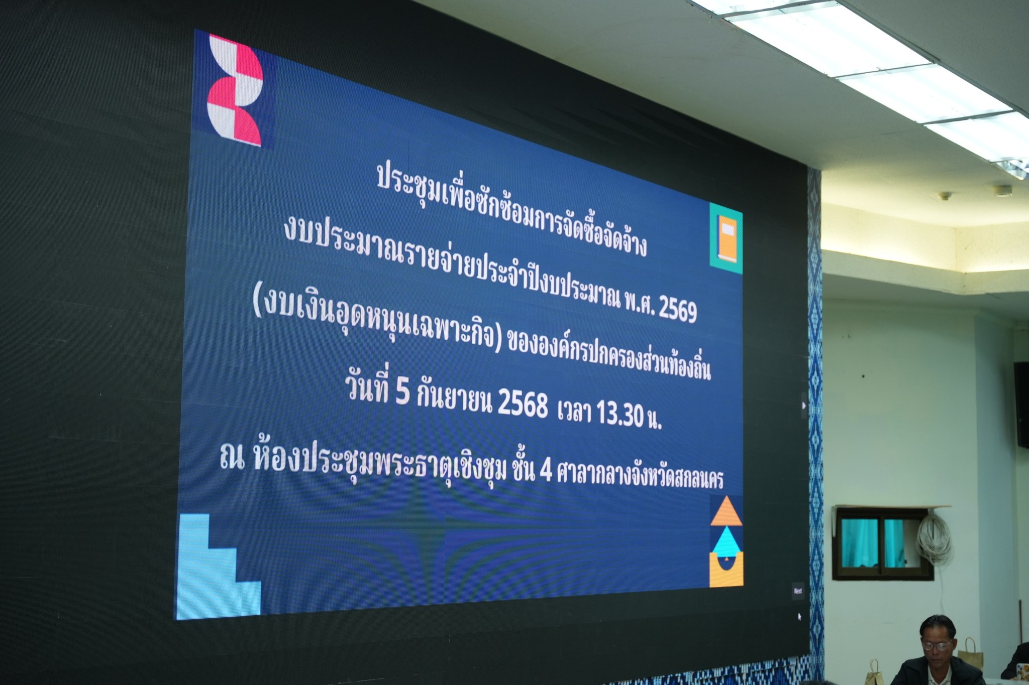 องค์การบริหารส่วนจังหวัดสกลนคร โดยนางนฤมล สัพโส นายกองค์การบริหารส่วนจังหวัดสกลนคร มอบหมายให้นายพินิตเมธ ทีฆธนานนท์ รองนายกองค์การบริหารส่วนจังหวัดสกลนคร เข้าร่วมการประชุมเพื่อซักซ้อมแนวทางการจัดซื้อจัดจ้างงบประมาณรายจ่ายประจำปี พ.ศ. 2569 (งบเงินอุดหนุนเฉพาะกิจ) ขององค์กรปกครองส่วนท้องถิ่น