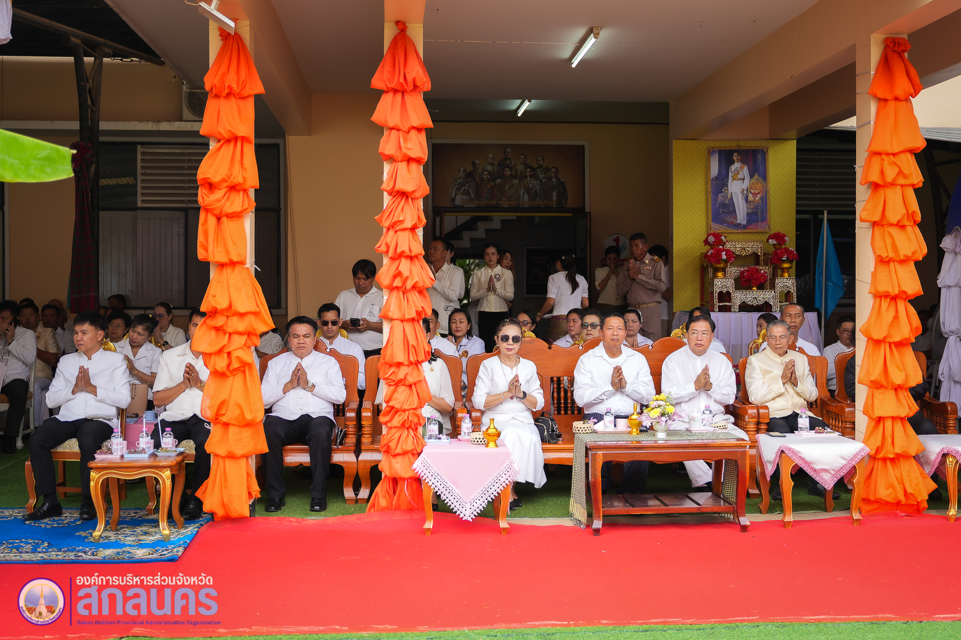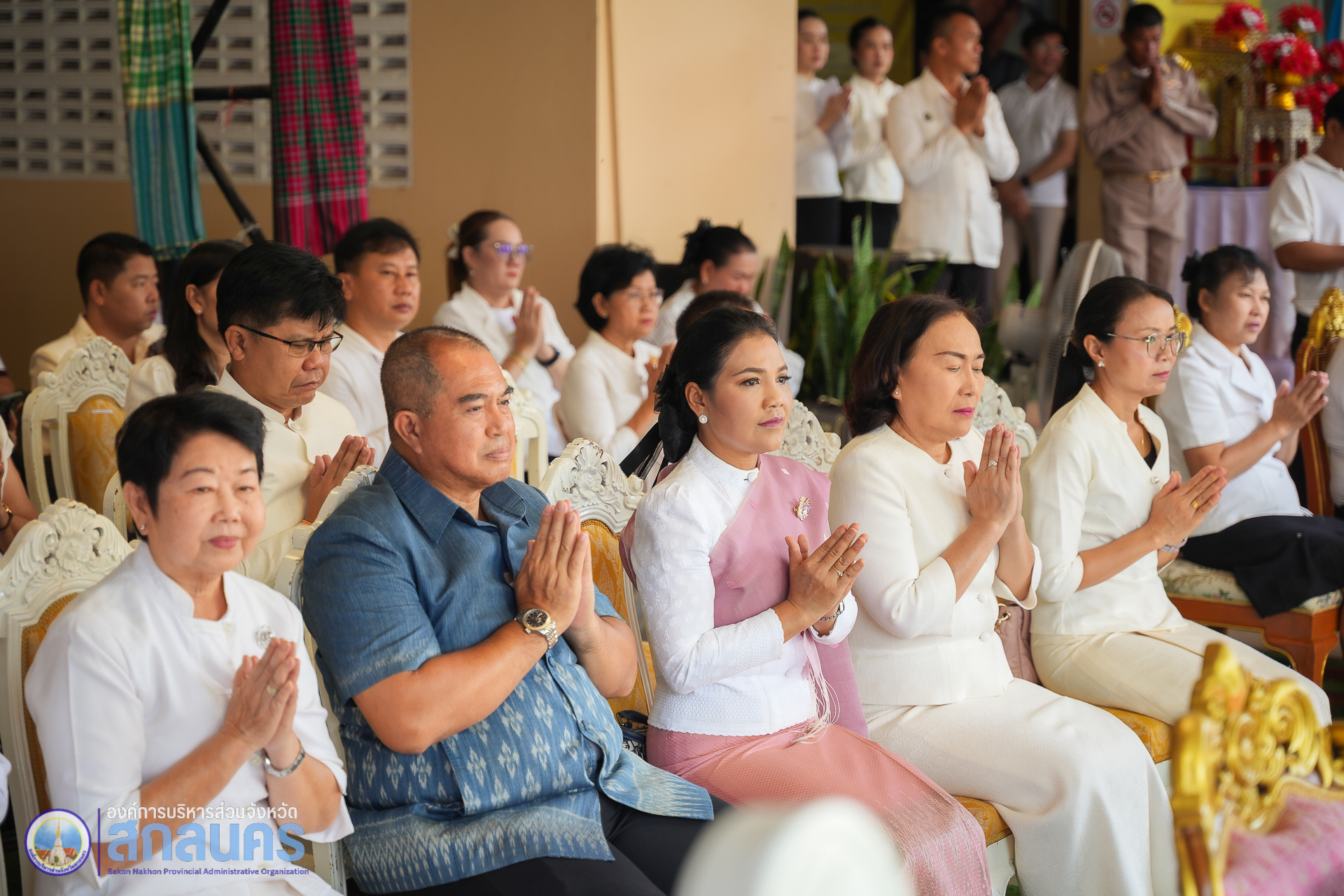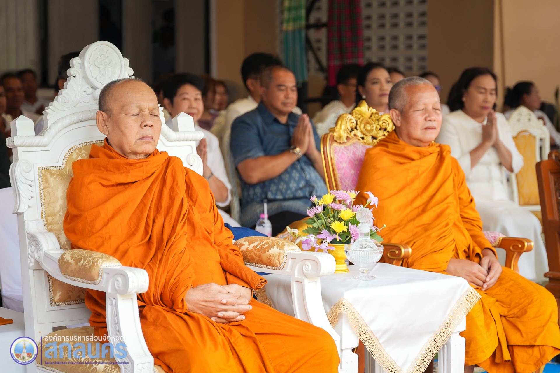 พิธีในครั้งนี้ได้รับความเมตตาจากพระเทพวชิรรังษี เจ้าคณะจังหวัดสกลนคร (ธรรมยุต) เป็นประธานฝ่ายสงฆ์ พร้อมด้วยพระรัตนากรวิสุทธิ์ รองเจ้าคณะจังหวัด ร่วมประกอบพิธีเจิมและประพรมน้ำพระพุทธมนต์ลงบนแผ่นศิลาฤกษ์ ก่อนดำเนินพิธีตอกไม้มงคล 9 ชนิด วางอิฐทอง เงิน นาค และโปรยอัญมณี เพื่อความเป็นสิริมงคล