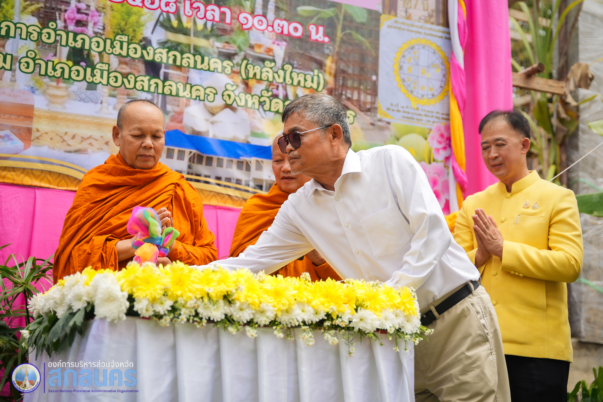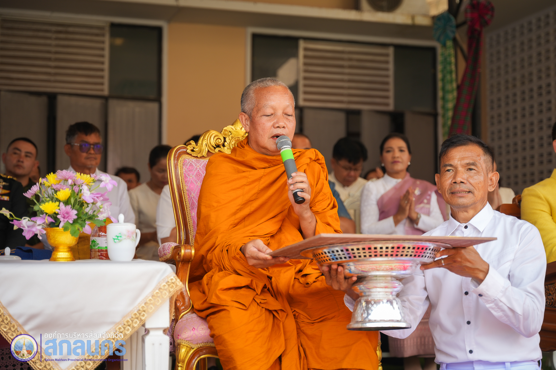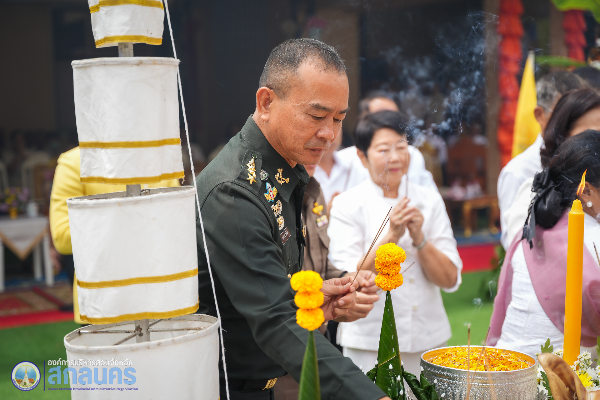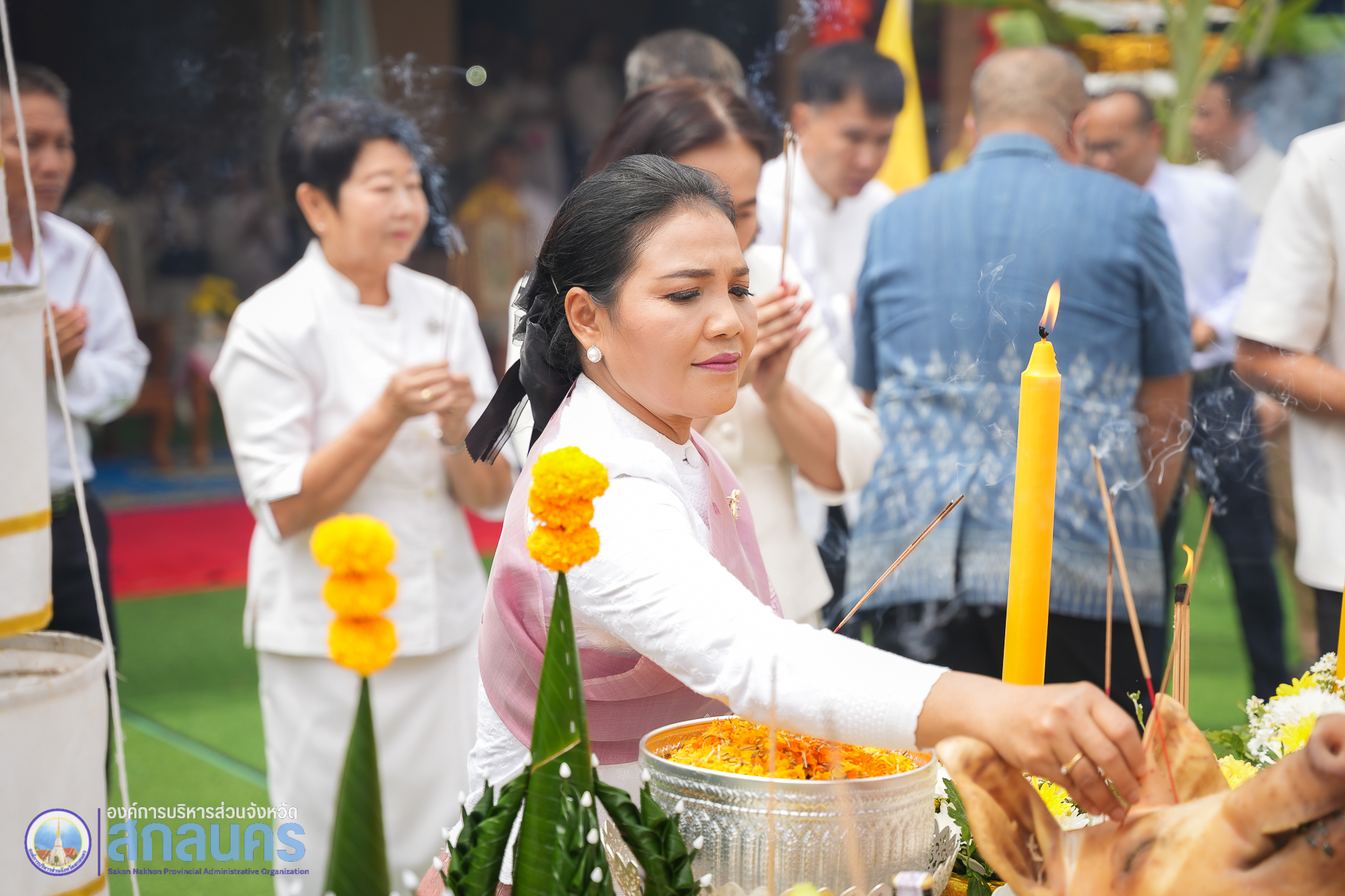 พิธีในครั้งนี้ได้รับความเมตตาจากพระเทพวชิรรังษี เจ้าคณะจังหวัดสกลนคร (ธรรมยุต) เป็นประธานฝ่ายสงฆ์ พร้อมด้วยพระรัตนากรวิสุทธิ์ รองเจ้าคณะจังหวัด ร่วมประกอบพิธีเจิมและประพรมน้ำพระพุทธมนต์ลงบนแผ่นศิลาฤกษ์ ก่อนดำเนินพิธีตอกไม้มงคล 9 ชนิด วางอิฐทอง เงิน นาค และโปรยอัญมณี เพื่อความเป็นสิริมงคล