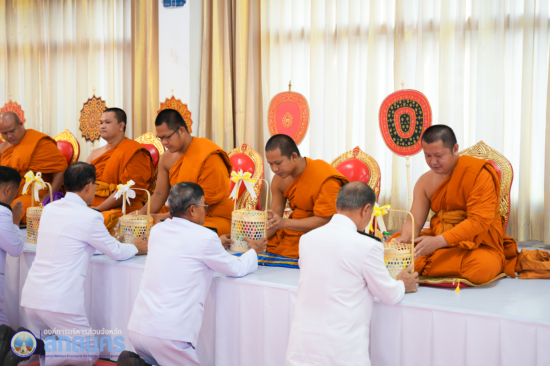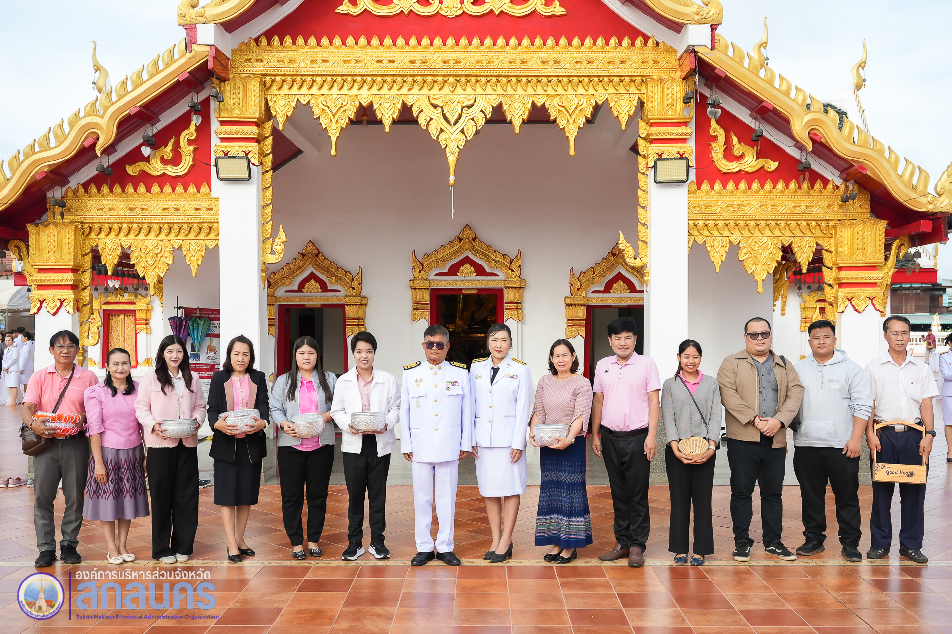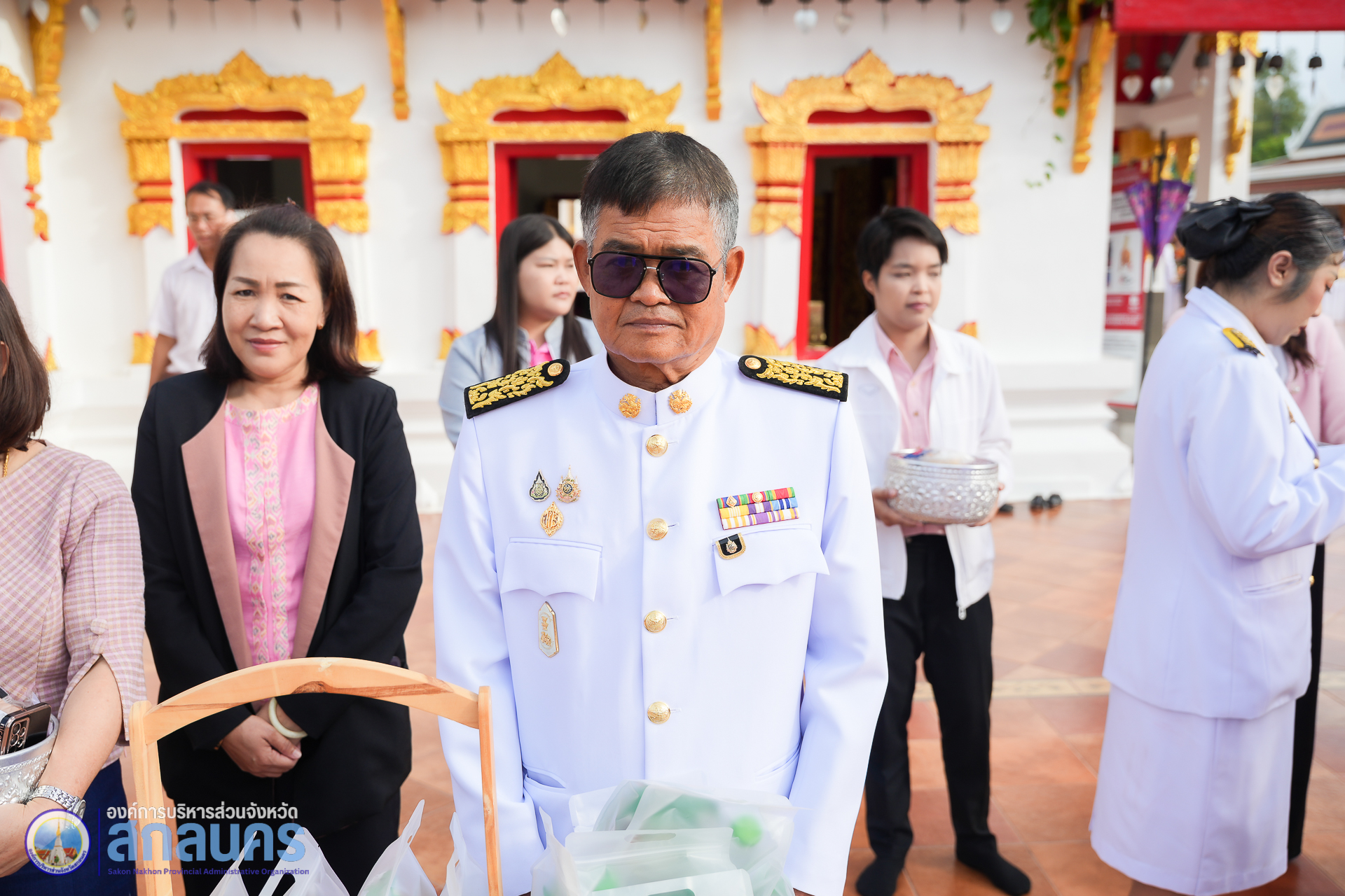 พิธีประกอบด้วยพิธีทำบุญตักบาตรพระสงฆ์ เพื่อถวายเป็นพระราชกุศล โดยมีนายวีระ ฤกษ์วาณิชย์กุล รองผู้ว่าราชการจังหวัดสกลนคร เป็นประธานในพิธี