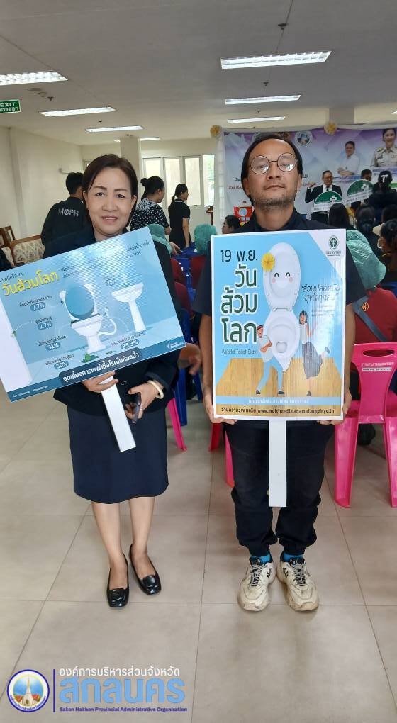 นางนฤมล สัพโส นายกองค์การบริหารส่วนจังหวัดสกลนคร มอบหมายให้ นายวสันต์ สาระนันท์ รองนายกองค์การบริหารส่วนจังหวัดสกลนคร เข้าร่วมกิจกรรม “รณรงค์วันส้วมโลก” ประจำปี 2568 เพื่อส่งเสริมการใช้ห้องส้วมอย่างถูกสุขลักษณะ และสร้างความตระหนักด้านสุขอนามัยให้แก่ประชาชน
