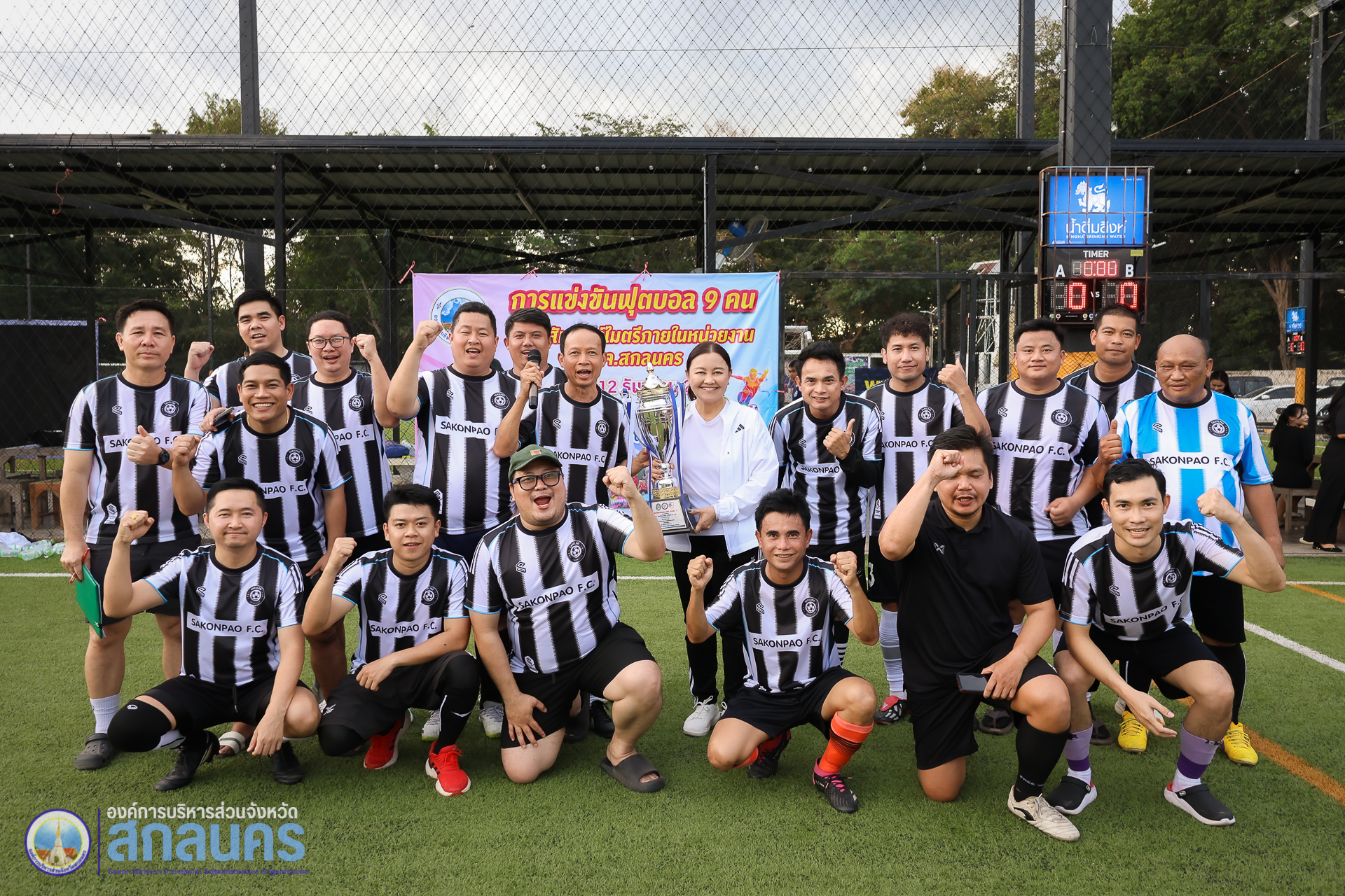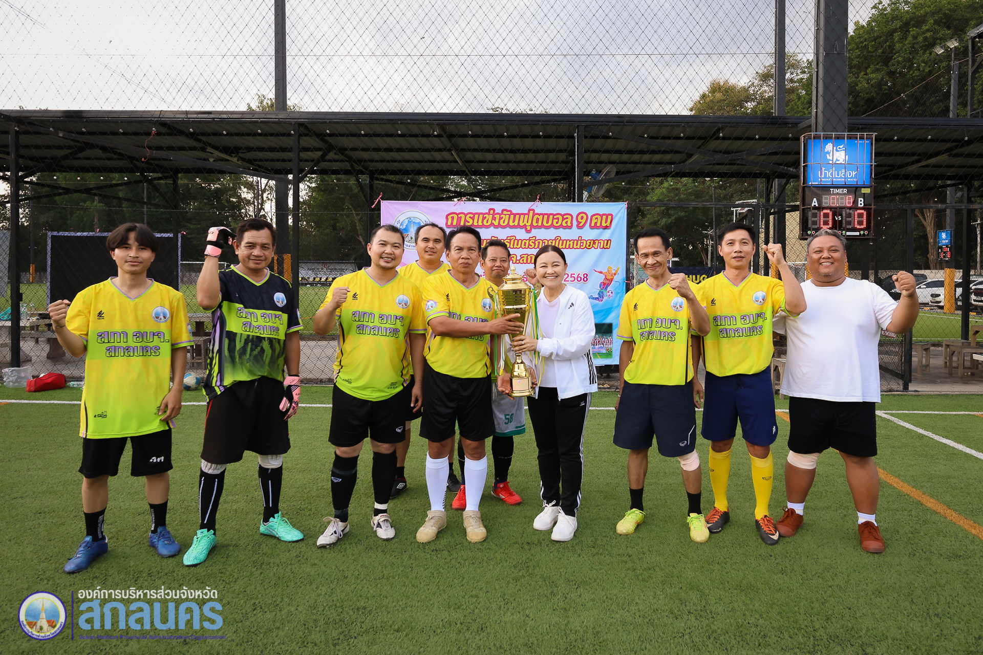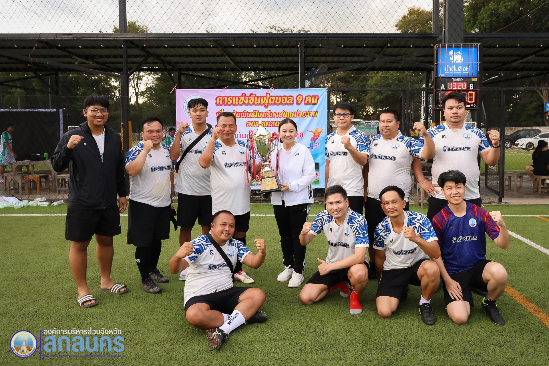 อบจ.สกลนคร เปิดการแข่งขันฟุตบอล 9 คน สร้างความสามัคคีและเชื่อมสัมพันธ์ภายในองค์กร