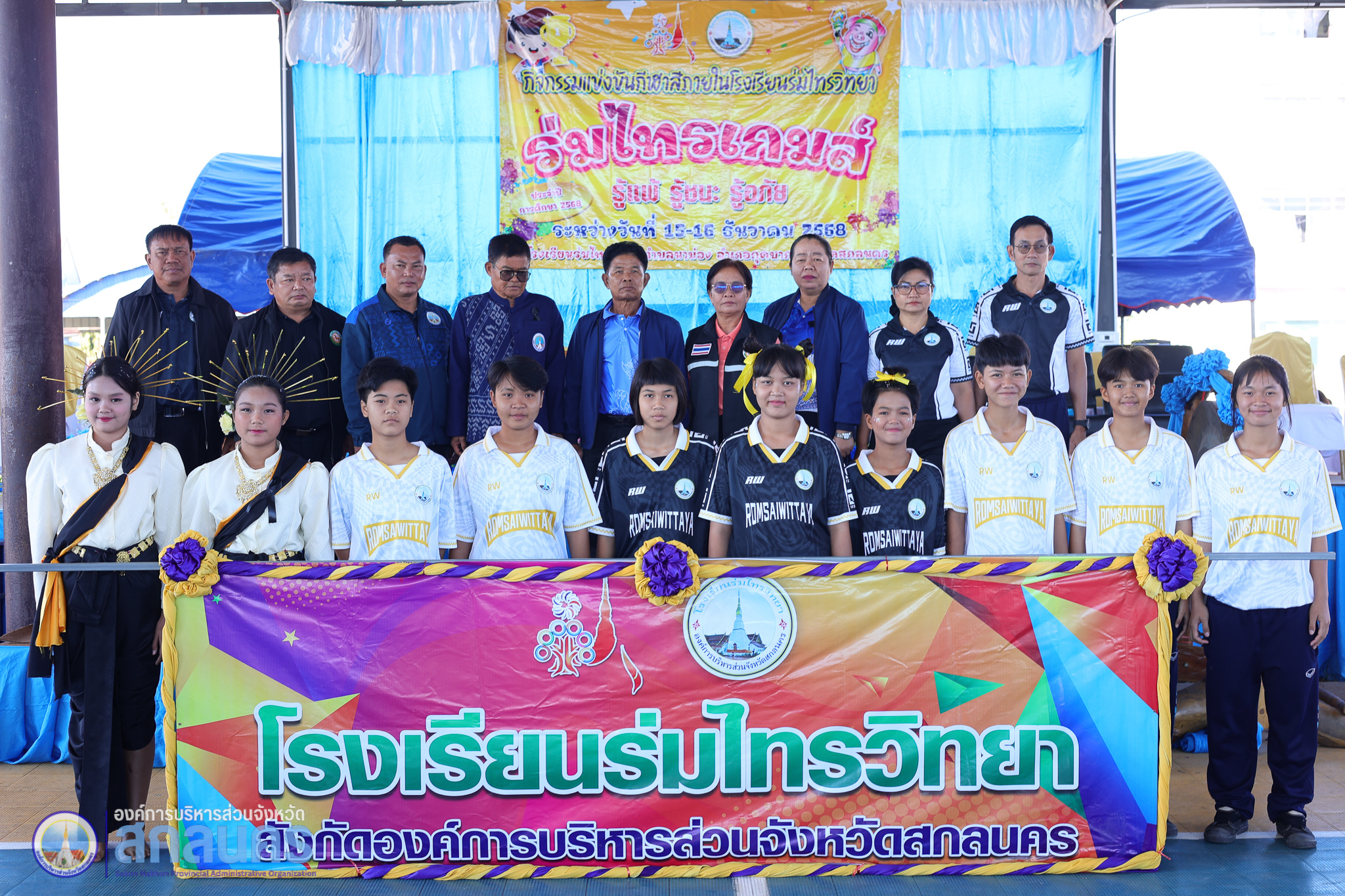 องค์การบริหารส่วนจังหวัดสกลนคร โดย นางนฤมล สัพโส นายกองค์การบริหารส่วนจังหวัดสกลนคร มอบหมายให้ นายวสันต์ สาระนันต์ รองนายกองค์การบริหารส่วนจังหวัดสกลนคร เป็นประธานในพิธีเปิดการแข่งขันกีฬาสีภายในโรงเรียนร่มไทรวิทยา สังกัดองค์การบริหารส่วนจังหวัดสกลนคร ประจำปีการศึกษา 2568 ณ สนามกีฬาฟุตซอลโรงเรียนร่มไทรวิทยา ตำบลนาม่อง อำเภอกุดบาก จังหวัดสกลนคร