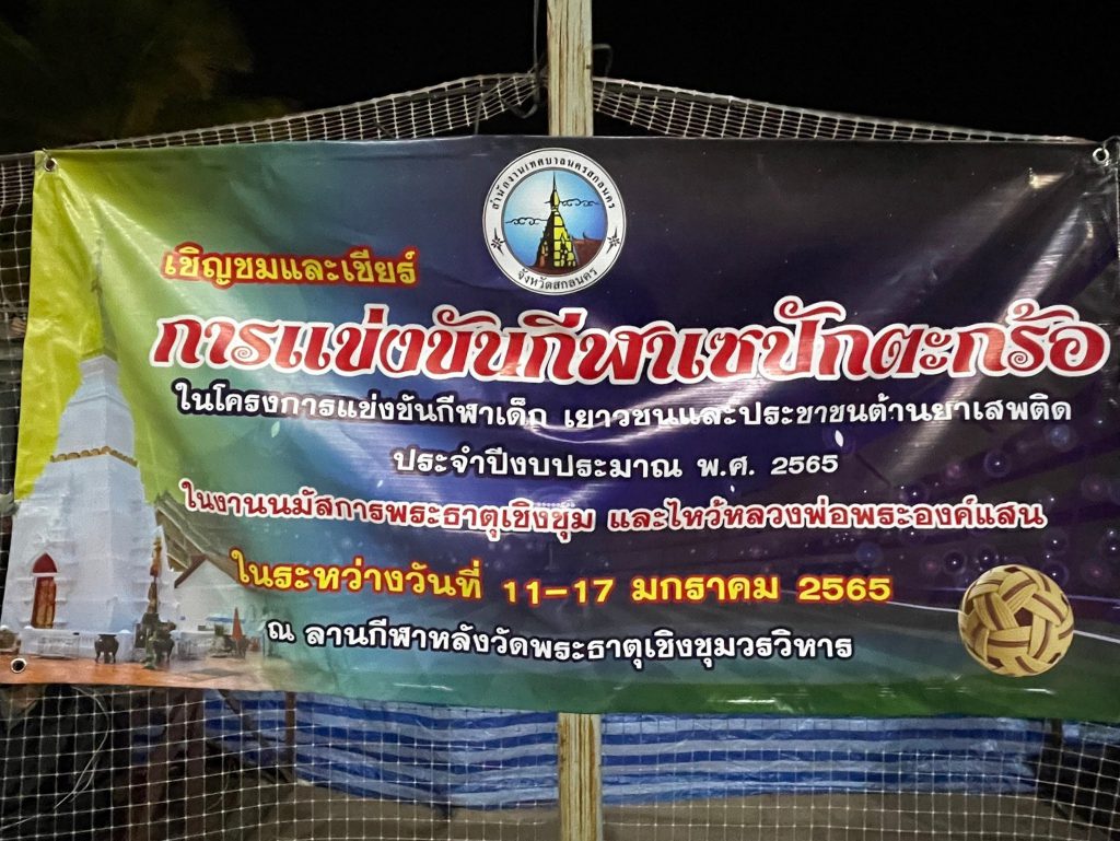 ดร.ชูพงศ์ คำจวง นายกองค์การบริหารส่วนจังหวัดสกลนคร ร่วมรับชมการแข่งขันกีฬาเซปักตระกร้อ ในโครงการแข่งขันกีฬาเด็ก เยาวชนและประชาชนต้านยาเสพติด พร้อมมอบเงินสนับสนุนกีฬาเซปักตระกร้อของชมรมตะกร้อหลังวัดพระธาตุ ณ ลานกีฬาหลังวัดพระธาตุเชิงชุมวรวิหาร จ.สกลนคร