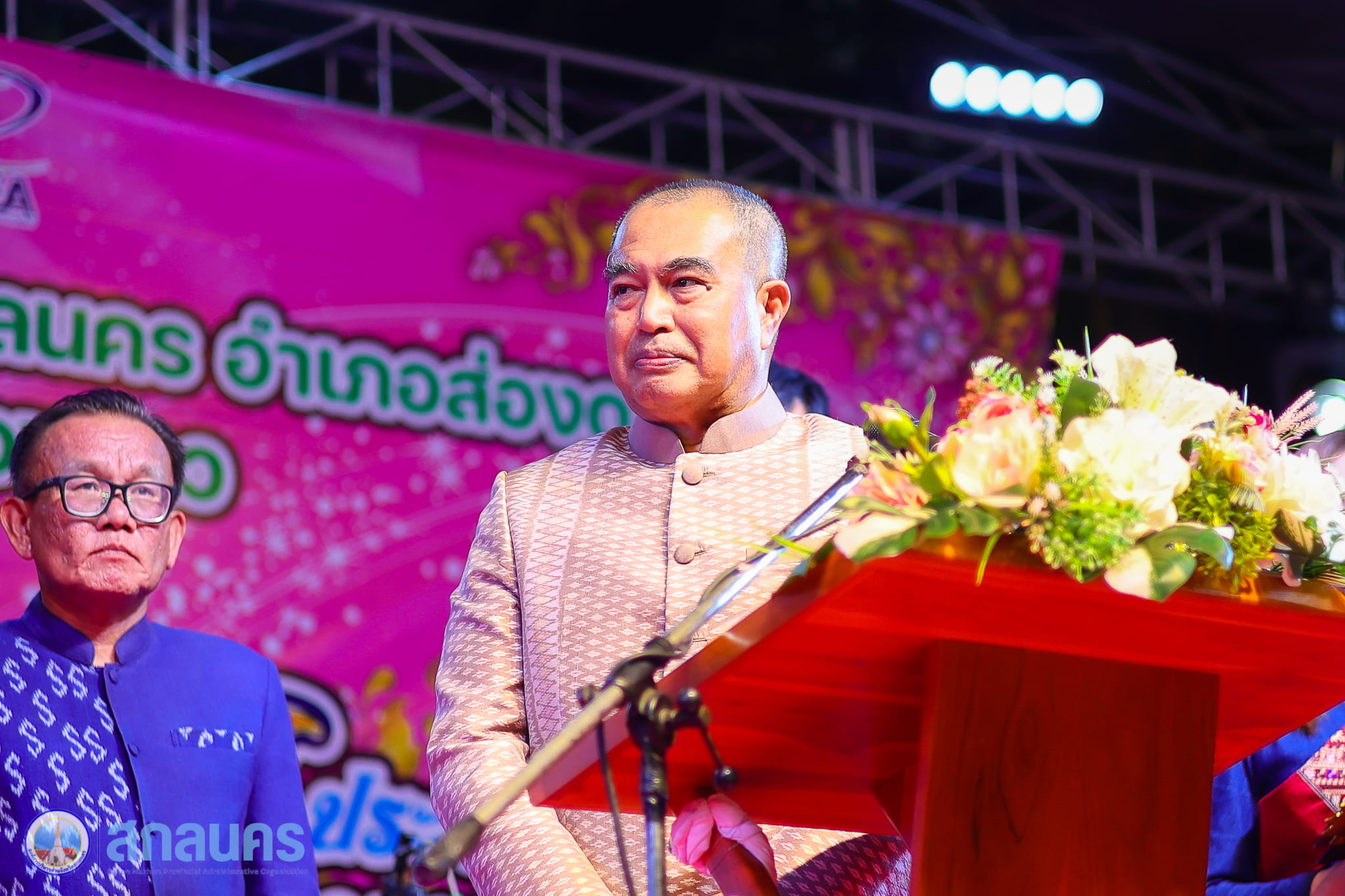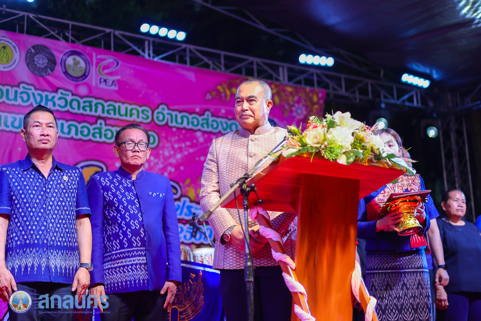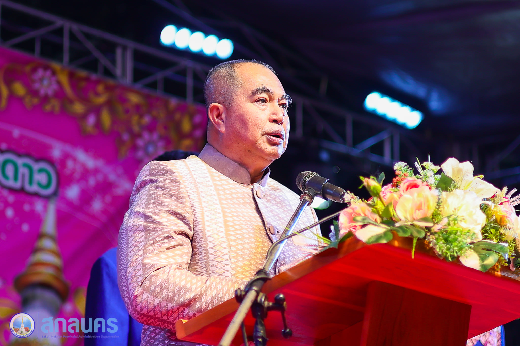 ภายในพิธี นายก อบจ.สกลนคร ได้กล่าวรายงานวัตถุประสงค์การจัดงาน พร้อมสนับสนุนงบประมาณการจัดงานจำนวน 500,000 บาท และร่วมลั่นฆ้องเปิดงาน เพื่อความเป็นสิริมงคลแก่ประชาชนในพื้นที่