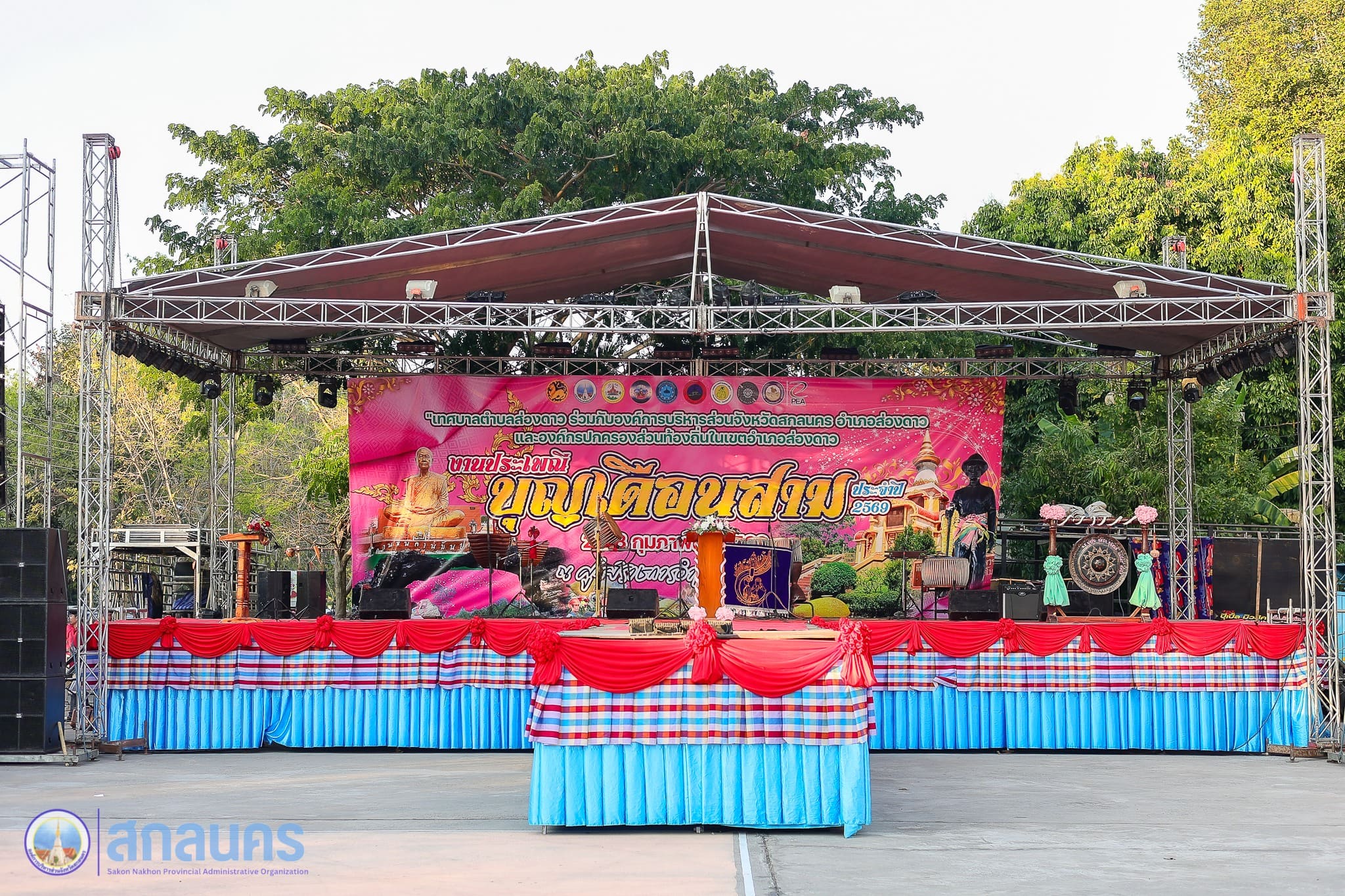 สำหรับงานบุญเดือนสาม ประจำปี 2569 กำหนดจัดขึ้นระหว่างวันที่ 2 – 9 กุมภาพันธ์ 2569 ณ ที่ว่าการอำเภอส่องดาว จังหวัดสกลนคร ภายในงานมีกิจกรรมทางศาสนาและวัฒนธรรมอย่างหลากหลาย อาทิ