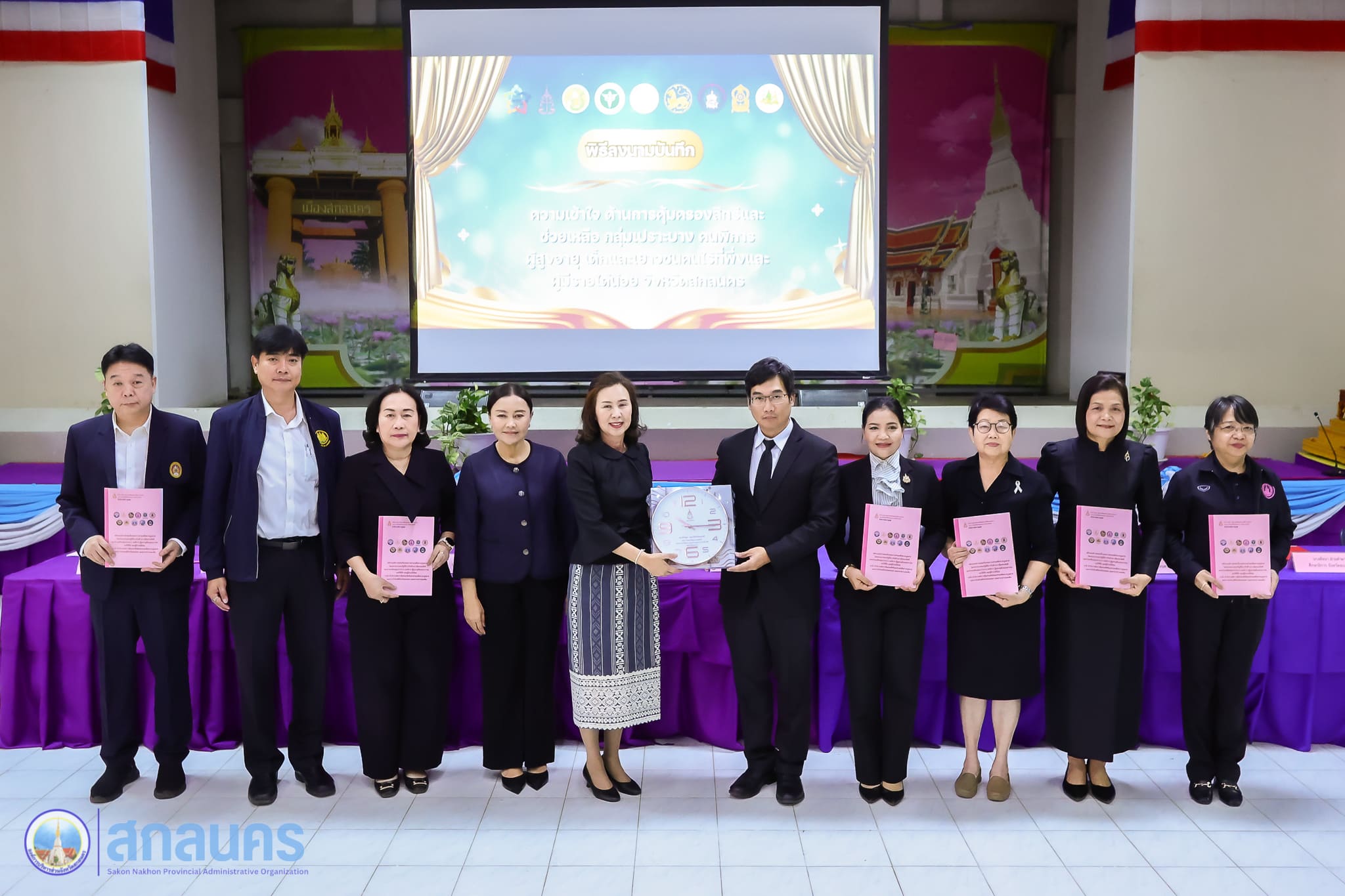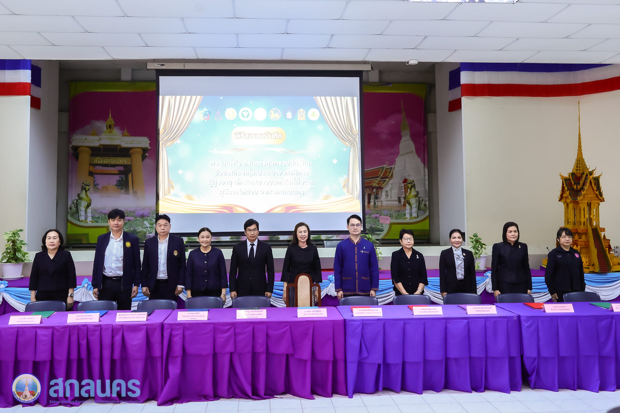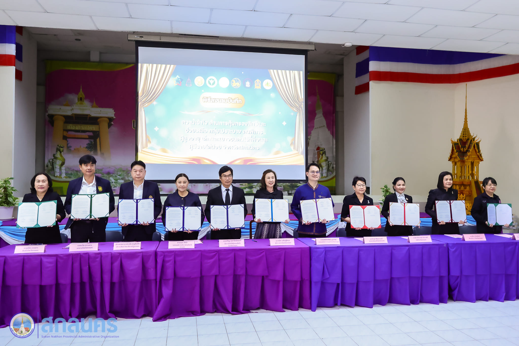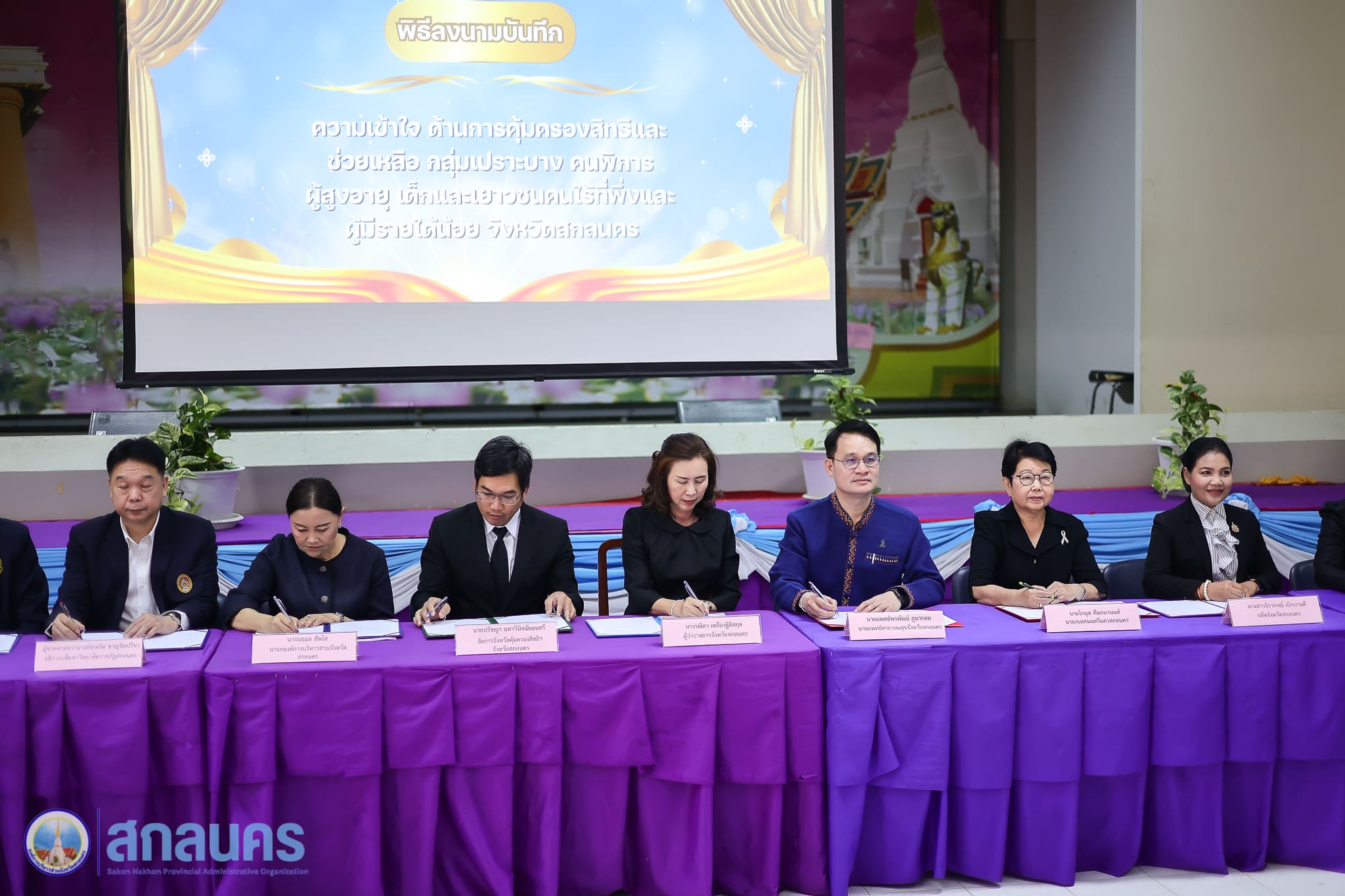 องค์การบริหารส่วนจังหวัดสกลนคร โดยนางนฤมล สัพโส นายกองค์การบริหารส่วนจังหวัดสกลนคร ร่วมเป็นเกียรติในพิธีเปิด พร้อมลงนามบันทึกความเข้าใจด้านการคุ้มครองสิทธิและช่วยเหลือกลุ่มเปราะบาง ได้แก่ คนพิการ ผู้สูงอายุ เด็กและเยาวชน คนไร้ที่พึ่ง และผู้มีรายได้น้อย จังหวัดสกลนคร