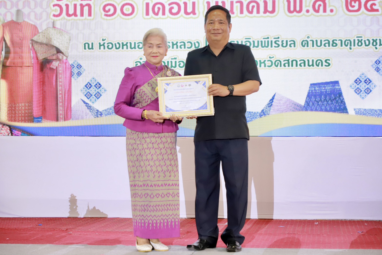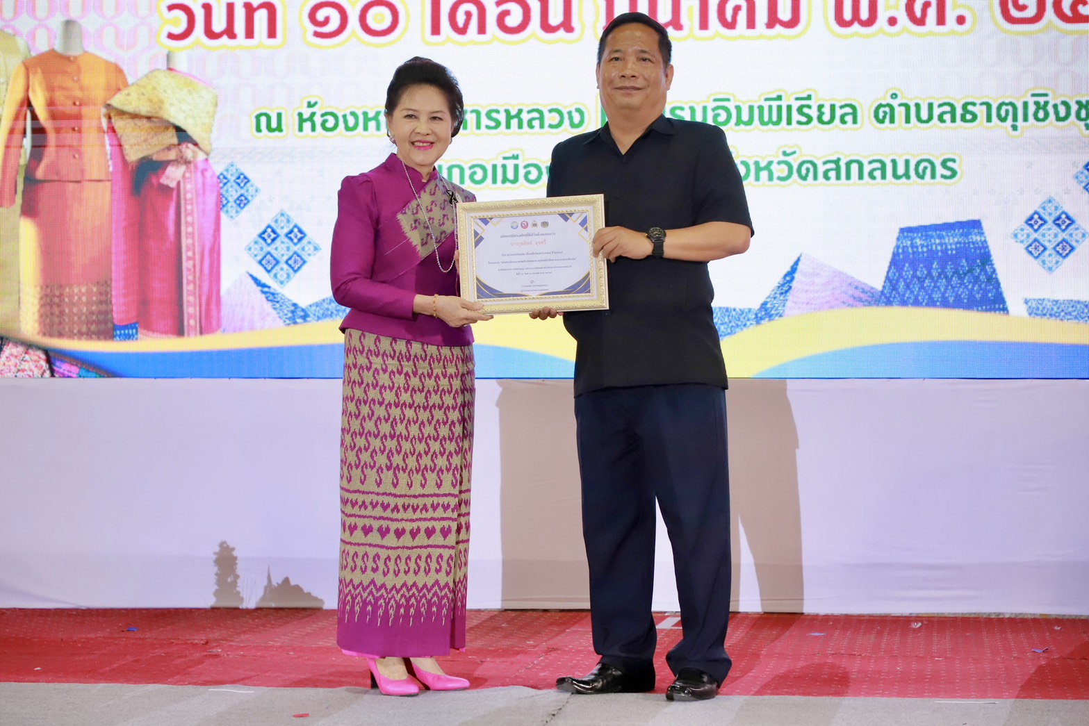 โดยมี นายวีรรัตน์ ธีรมิตร รองผู้ว่าราชการจังหวัดสกลนคร เป็นประธานในพิธีเปิดโครงการฯ ซึ่งการจัดกิจกรรมในครั้งนี้มีวัตถุประสงค์เพื่อส่งเสริมและพัฒนาศักยภาพสตรีให้มีความรู้ ความสามารถในการอนุรักษ์และสืบสานภูมิปัญญาท้องถิ่นด้านผ้าไทยและอาหารพื้นถิ่น อันเป็นเอกลักษณ์ของท้องถิ่น ตลอดจนสร้างโอกาสในการพัฒนาอาชีพและเพิ่มรายได้ให้กับชุมชนอย่างยั่งยืนต่อไป