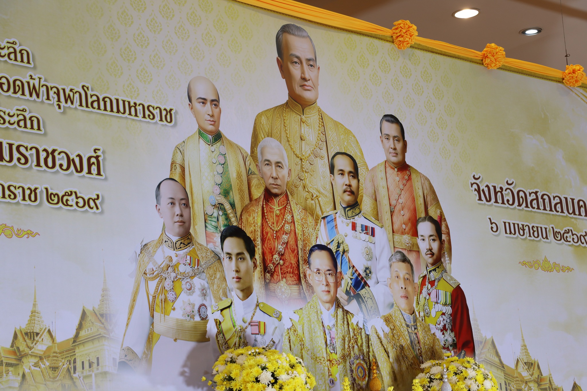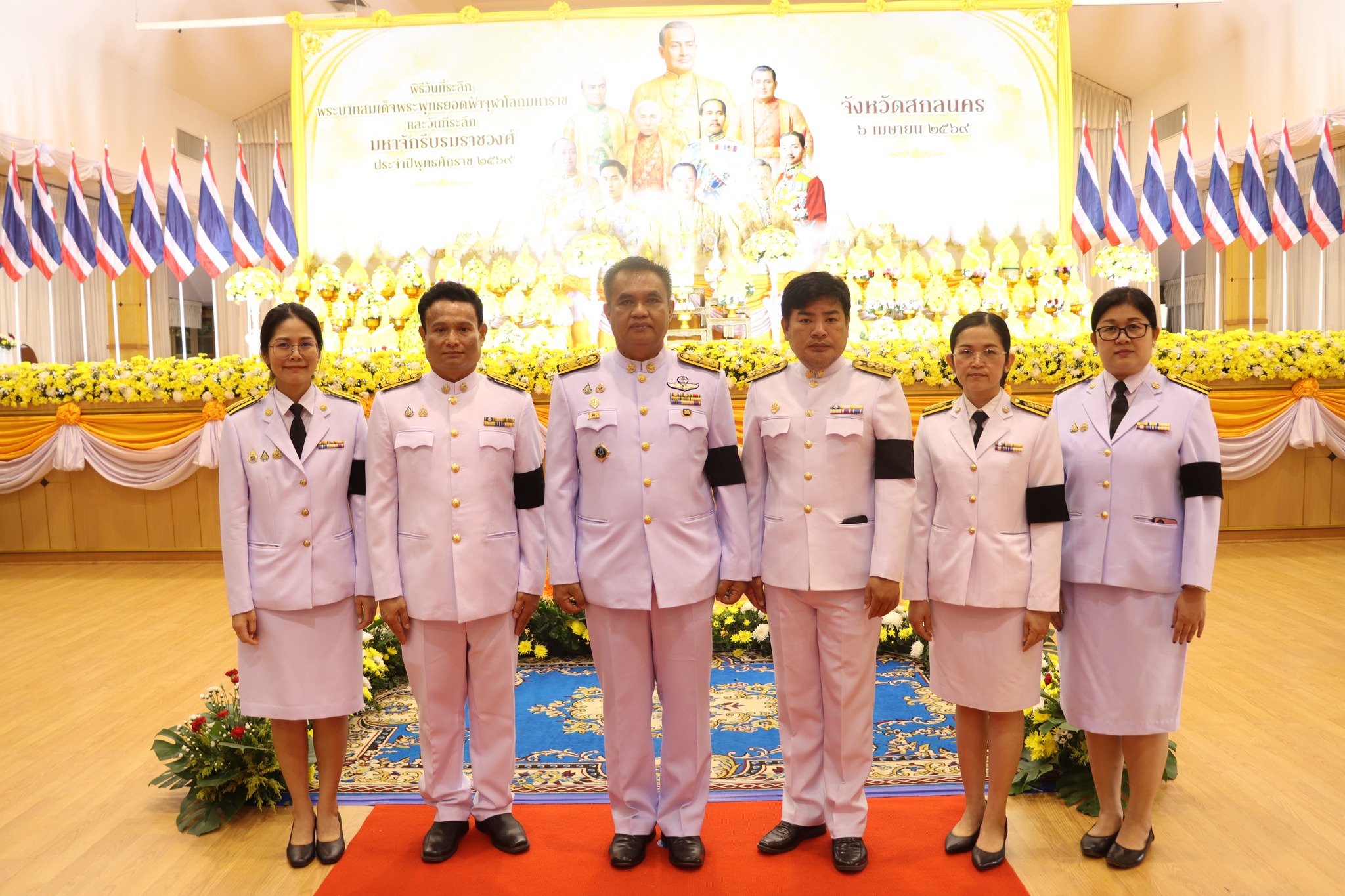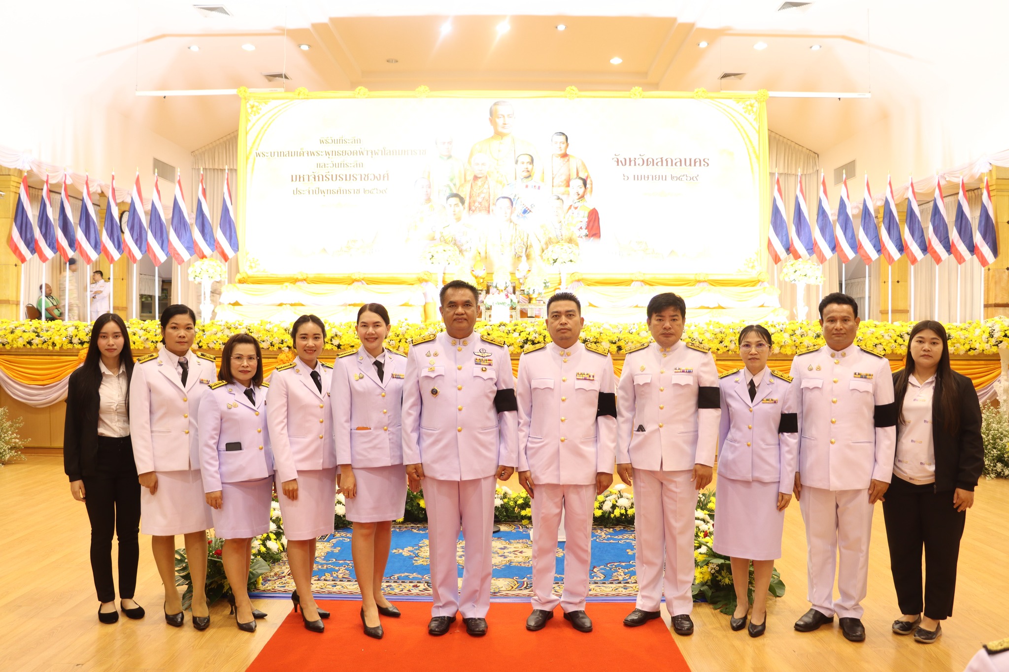 นางนฤมล สัพโส นายกองค์การบริหารส่วนจังหวัดสกลนคร มอบให้ ดร.วิรยศ เรียมแสน รองปลัดองค์การบริหารส่วนจังหวัดสกลนคร นำข้าราชการ สังกัดองค์การบริหารส่วนจังหวัดสกลนคร ร่วมพิธีวางพานพุ่มดอกไม้สดถวายราชสักการะ เนื่องใน “วันพระบาทสมเด็จพระพุทธยอดฟ้าจุฬาโลกมหาราช และวันที่ระลึกมหาจักรีบรมราชวงศ์” (วันจักรี) เพื่อแสดงความจงรักภักดีและน้อมรำลึกถึงพระมหากรุณาธิคุณ