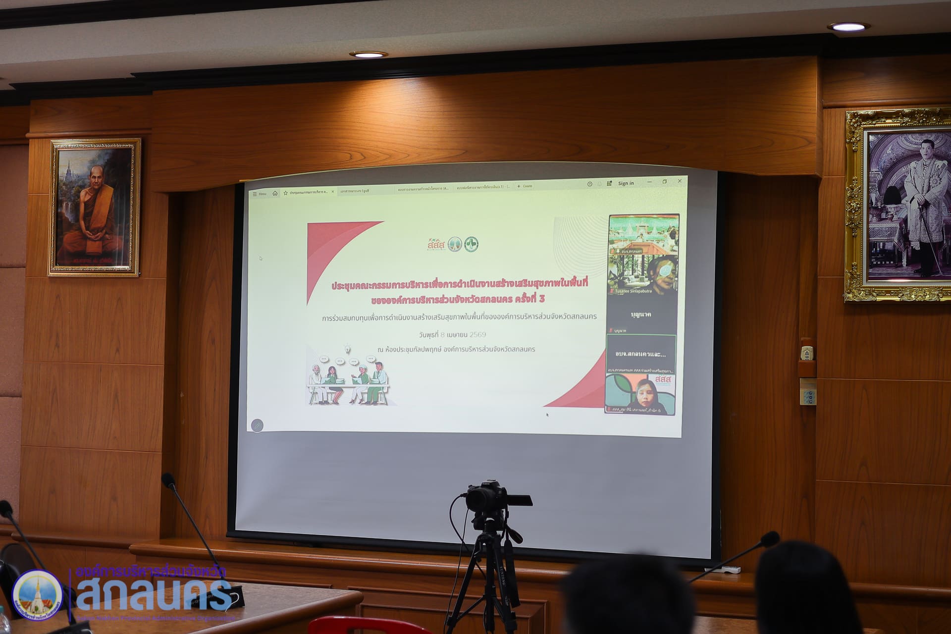 องค์การบริหารส่วนจังหวัดสกลนคร โดยนางนฤมล สัพโส นายกองค์การบริหารส่วนจังหวัดสกลนคร มอบหมายให้ นายเฉลียว สัพโส ที่ปรึกษานายกองค์การบริหารส่วนจังหวัดสกลนคร เป็นประธานในการประชุมคณะกรรมการบริหารเพื่อดำเนินงานสร้างเสริมสุขภาพในพื้นที่ขององค์การบริหารส่วนจังหวัดสกลนคร ครั้งที่ 3/2569 โดยได้มีคณะกรรมการมาเข้าร่วมกันอย่างพร้อมเพรียง
