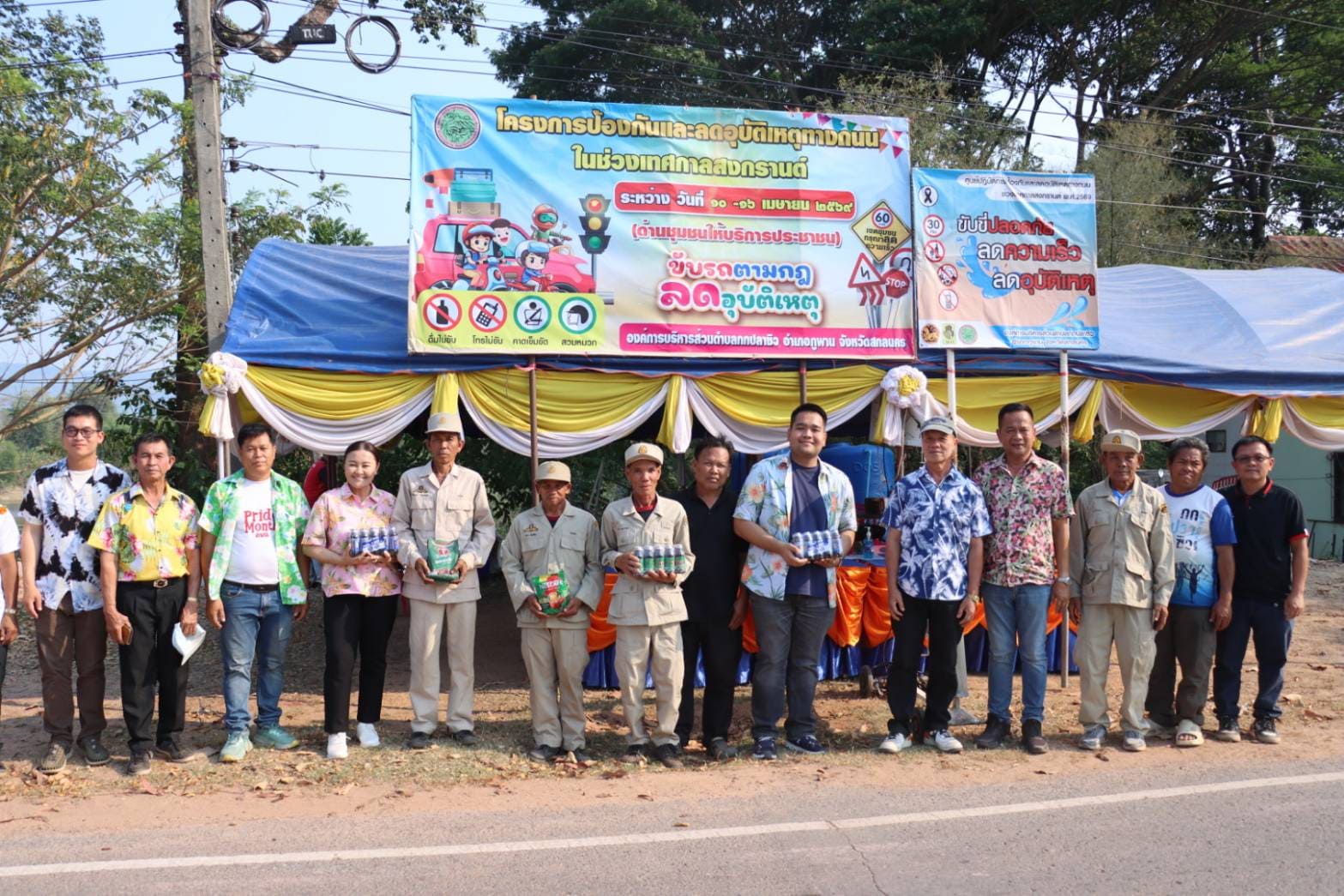 ในการนี้ นายกองค์การบริหารส่วนจังหวัดสกลนคร ได้มอบเครื่องดื่มให้แก่เจ้าหน้าที่ประจำด่านโครงการป้องกันและลดอุบัติเหตุทางถนนในช่วงเทศกาลสงกรานต์ ระหว่างวันที่ 11 – 16 เมษายน 2569 นี้ด้วย