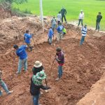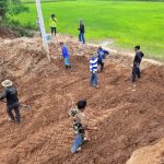 เทคอนกรีตรองพื้นบริเวณท่อระบายน้ำ เพื่อป้องกันการกัดเซาะใต้ถนนและเพิ่มความแข็งแรงปลอดภัยให้เส้นทาง