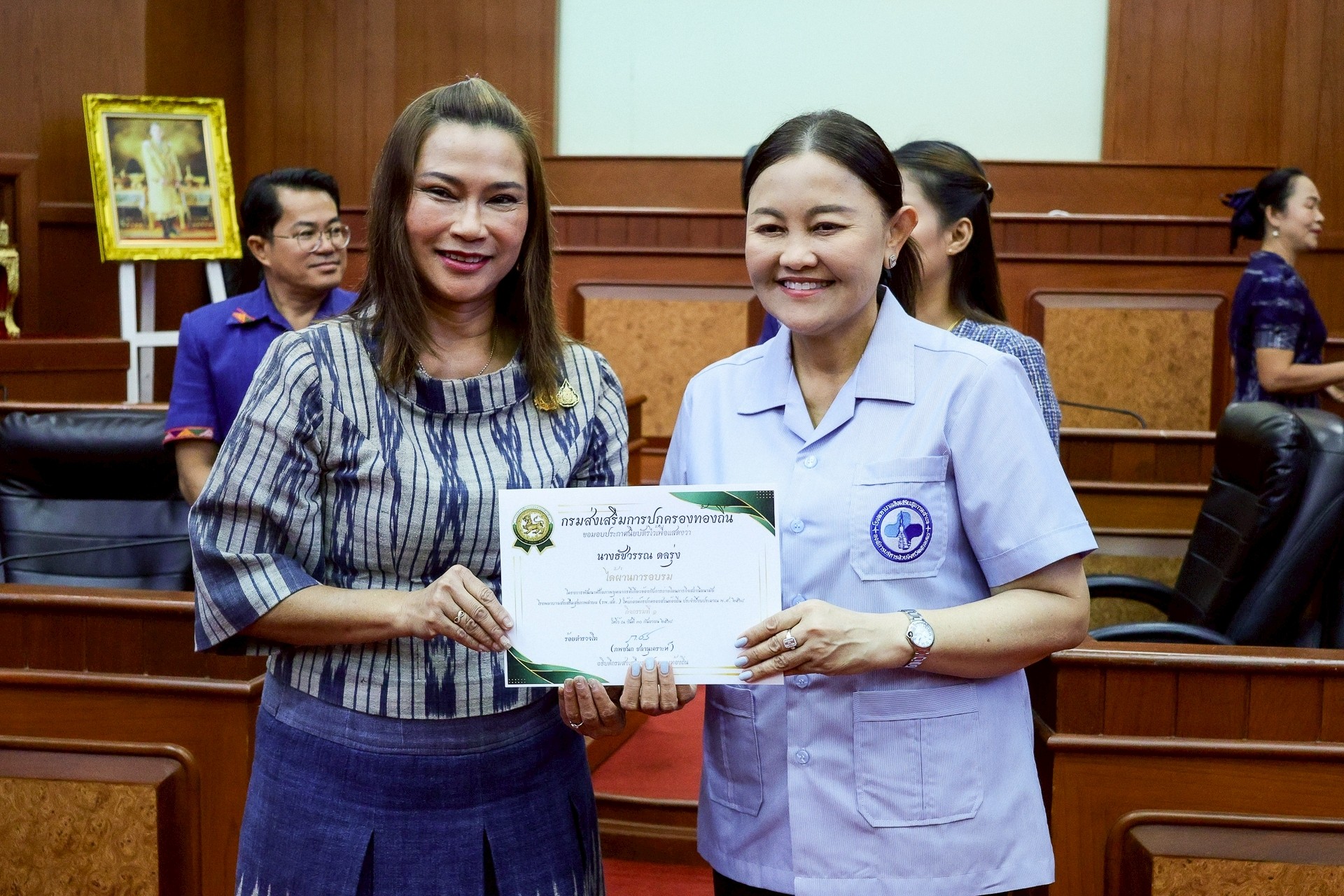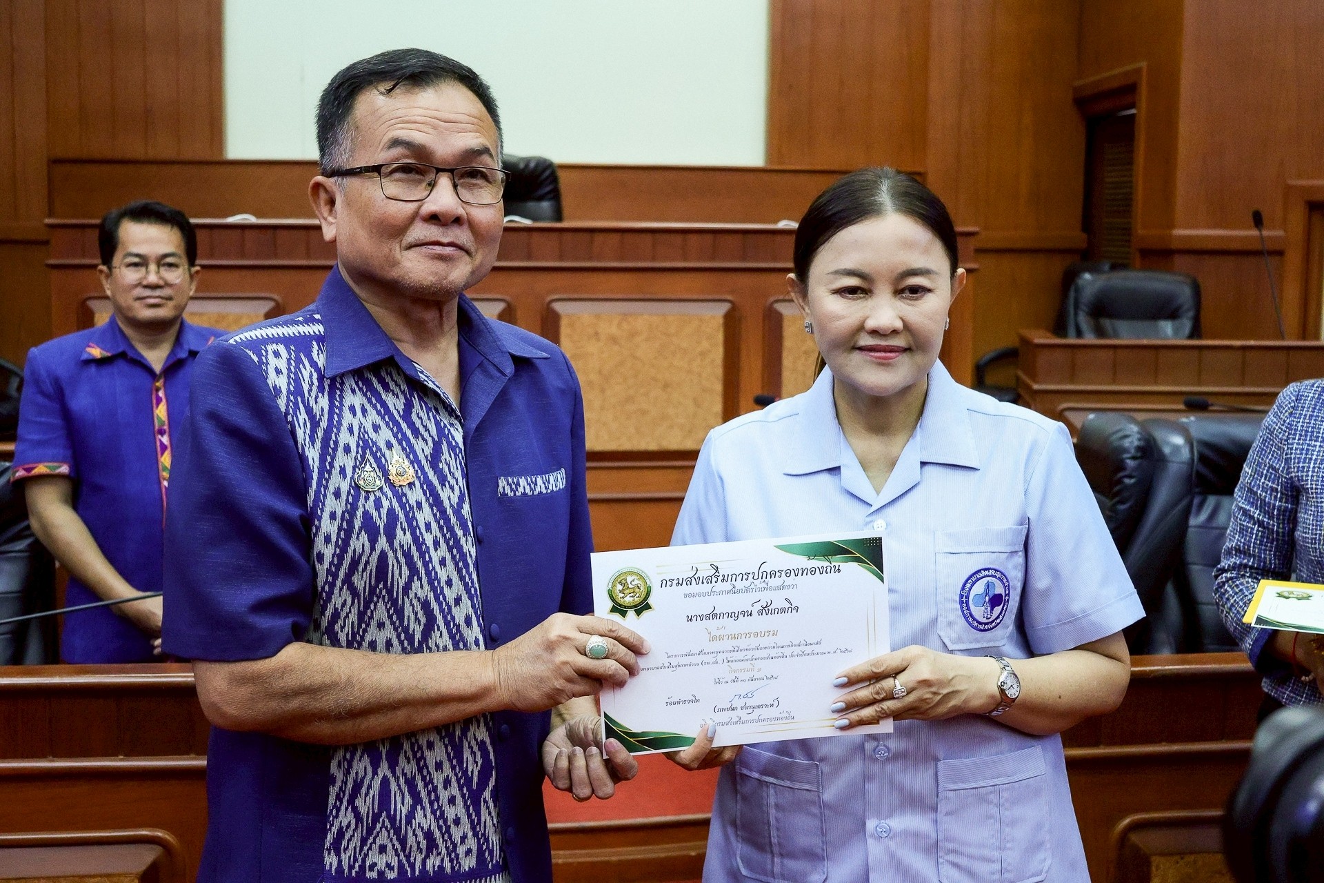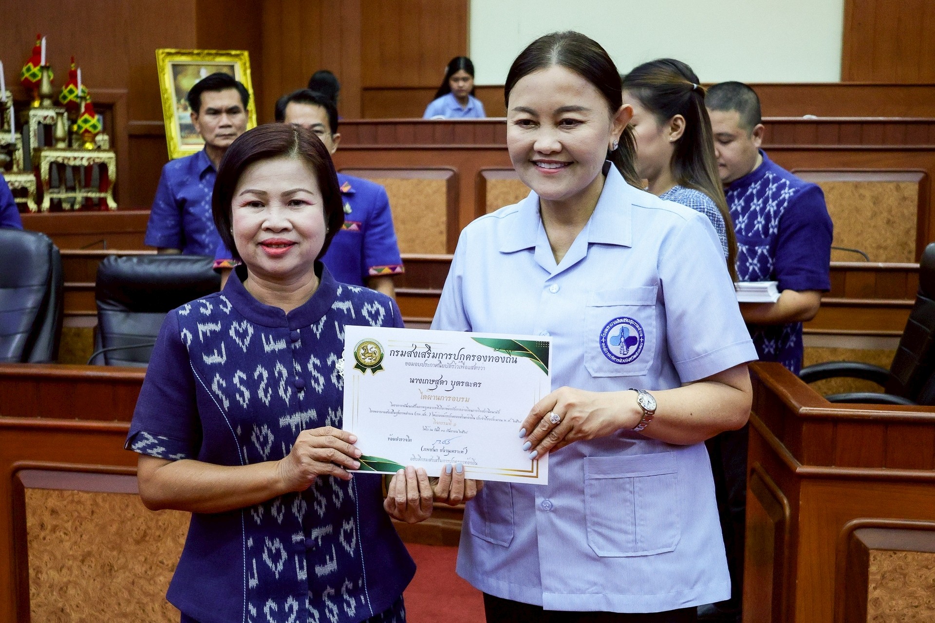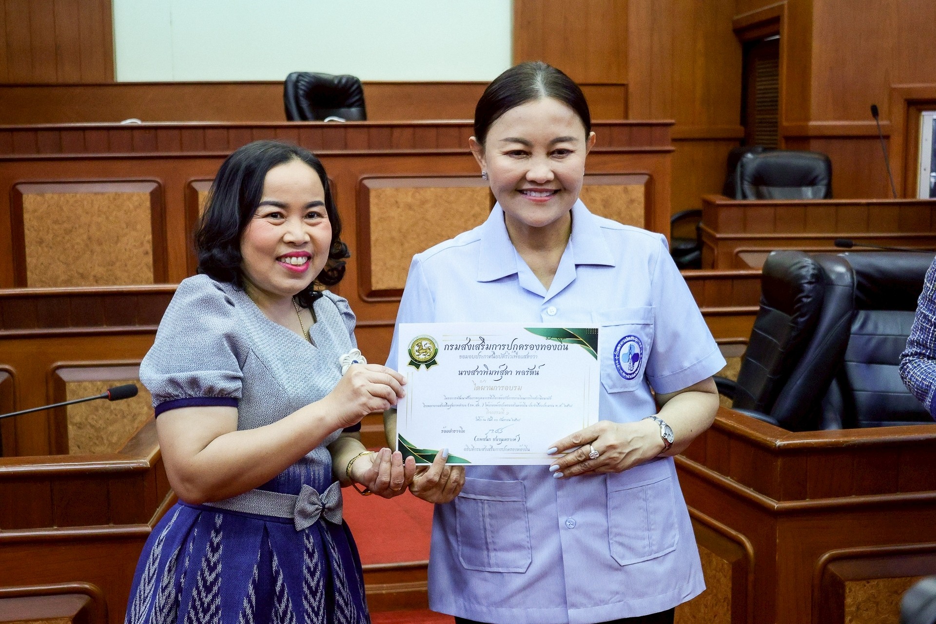 นางนฤมล สัพโส นายกองค์การบริหารส่วนจังหวัดสกลนคร เป็นประธานในพิธีมอบประกาศนียบัตรแก่ผู้เข้าร่วมอบรมโครงการพัฒนาคุณภาพชีวิตผู้สูงอายุขององค์กรปกครองส่วนท้องถิ่น ประจำปีงบประมาณ พ.ศ. 2568