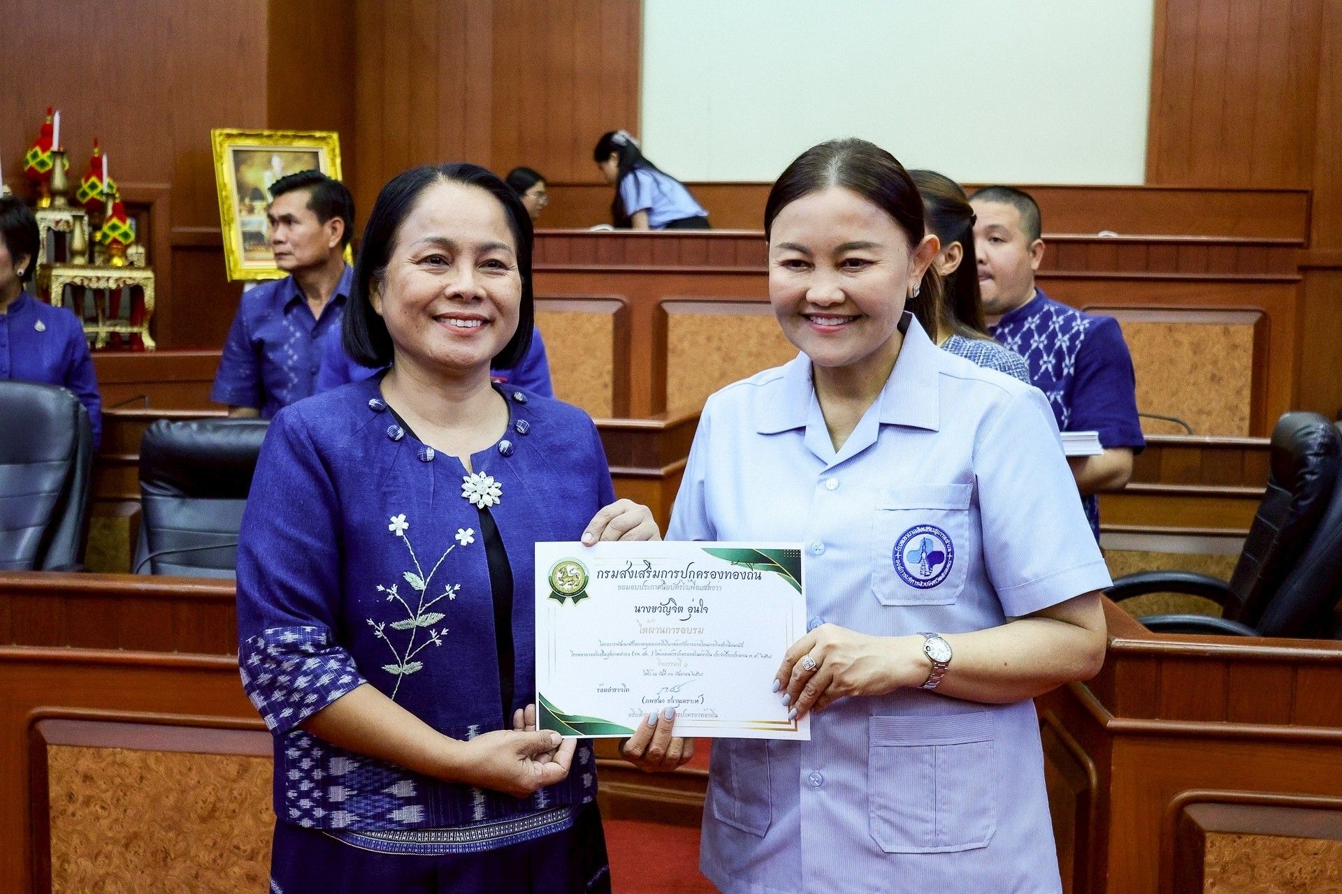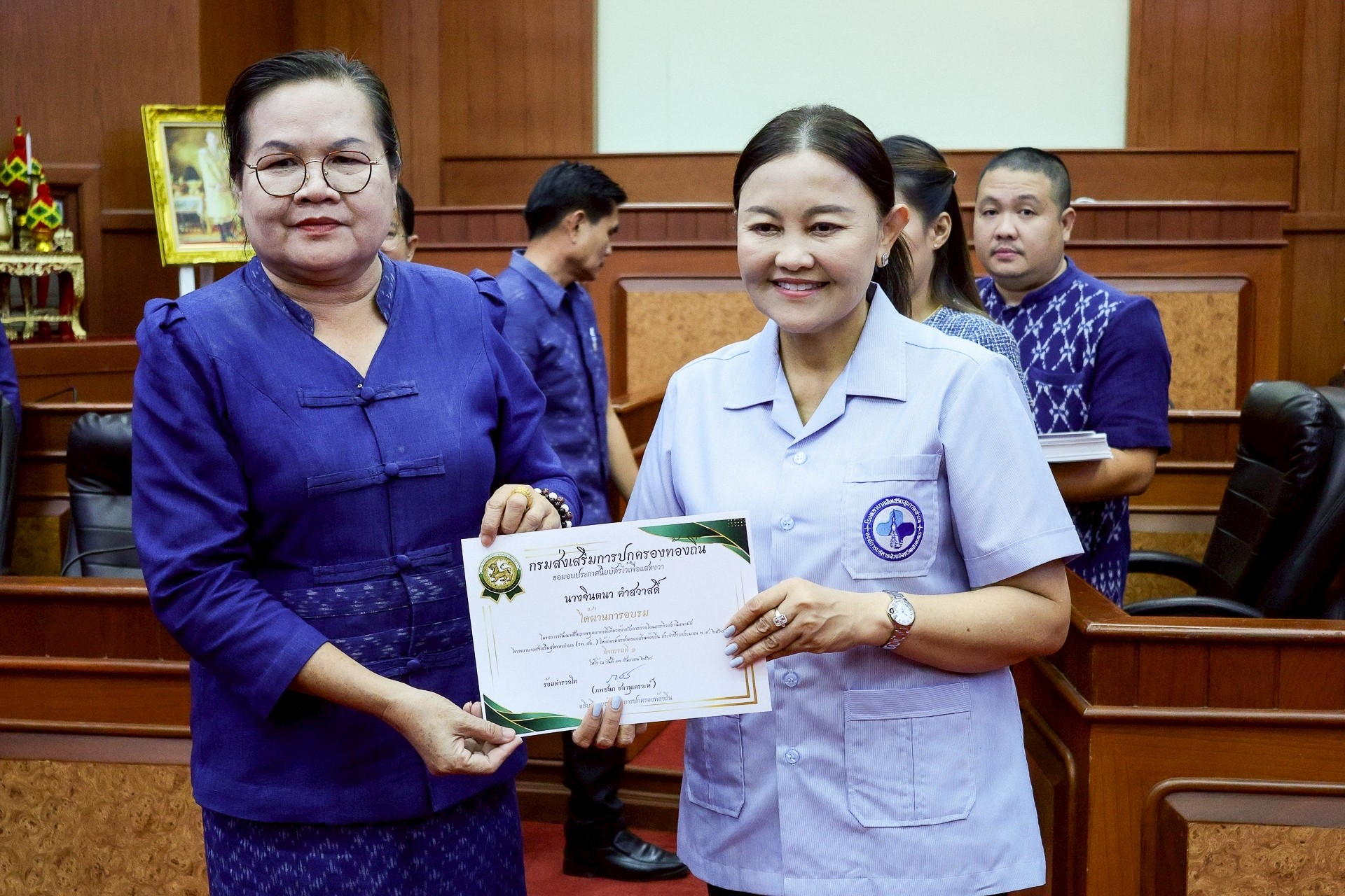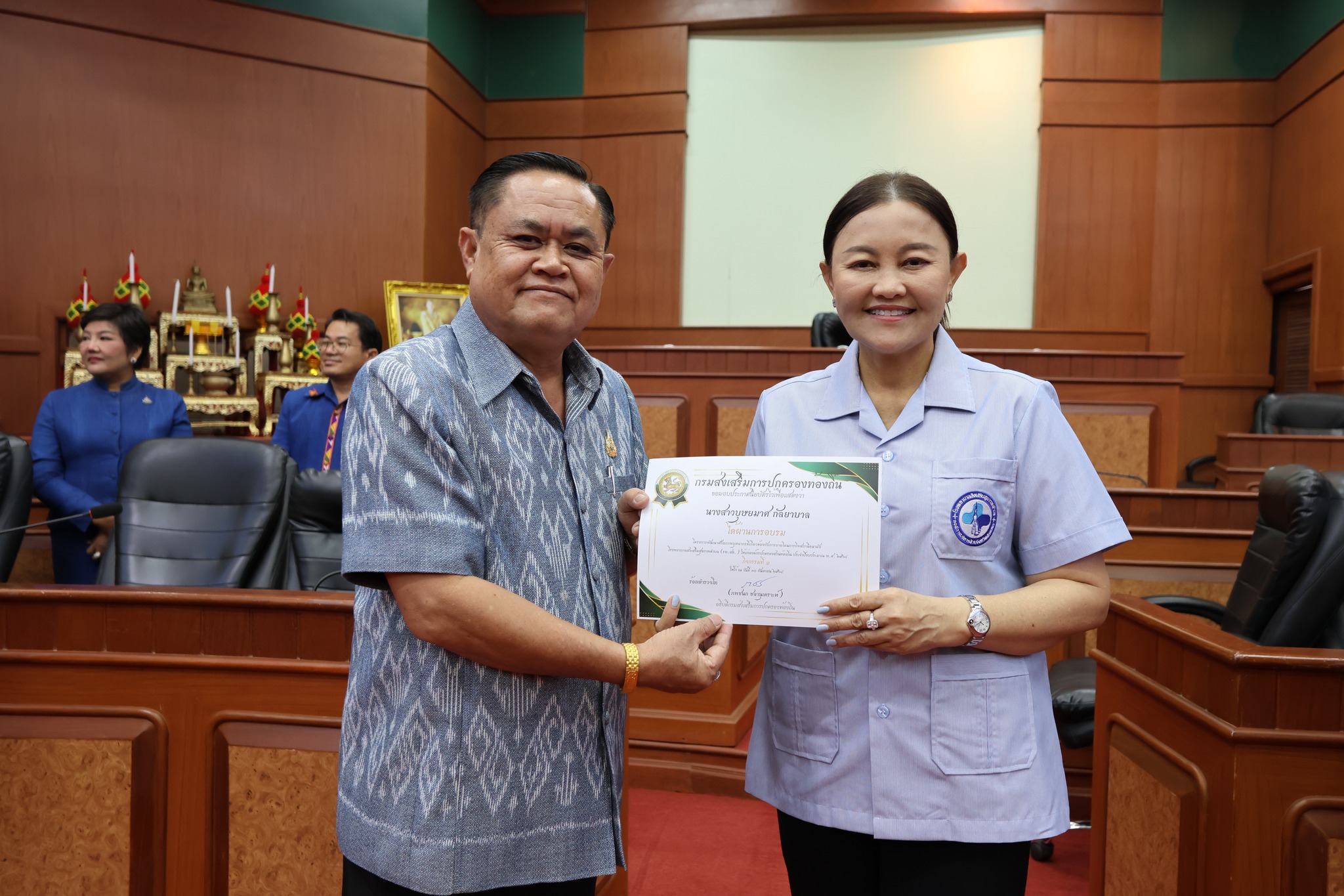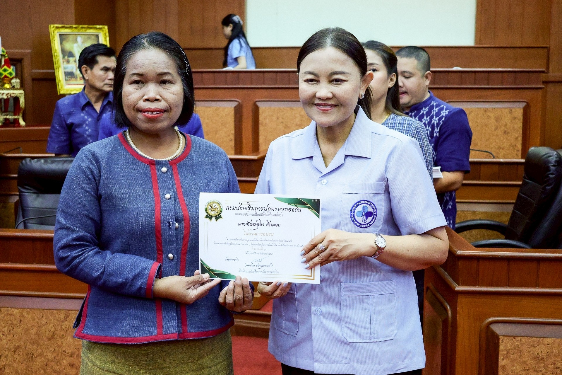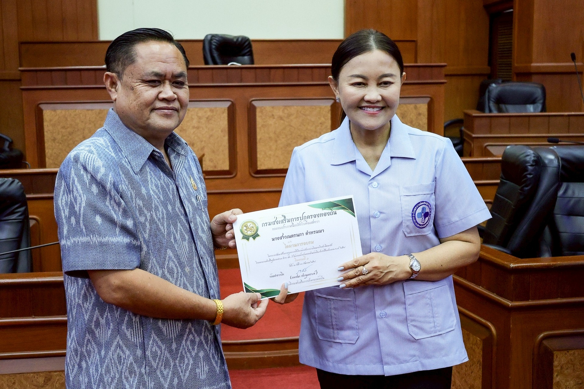 นางนฤมล สัพโส นายกองค์การบริหารส่วนจังหวัดสกลนคร เป็นประธานในพิธีมอบประกาศนียบัตรแก่ผู้เข้าร่วมอบรมโครงการพัฒนาคุณภาพชีวิตผู้สูงอายุขององค์กรปกครองส่วนท้องถิ่น ประจำปีงบประมาณ พ.ศ. 2568