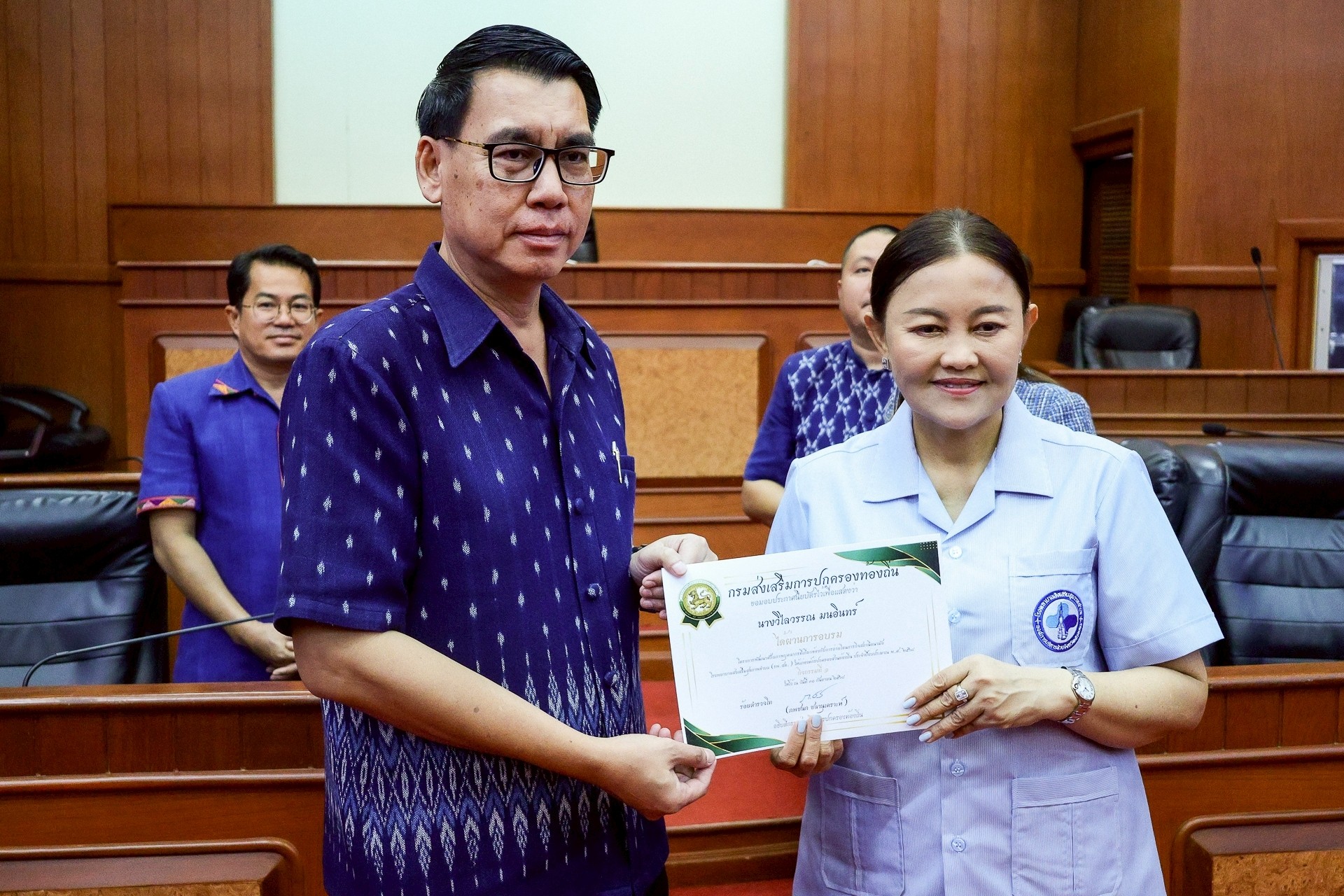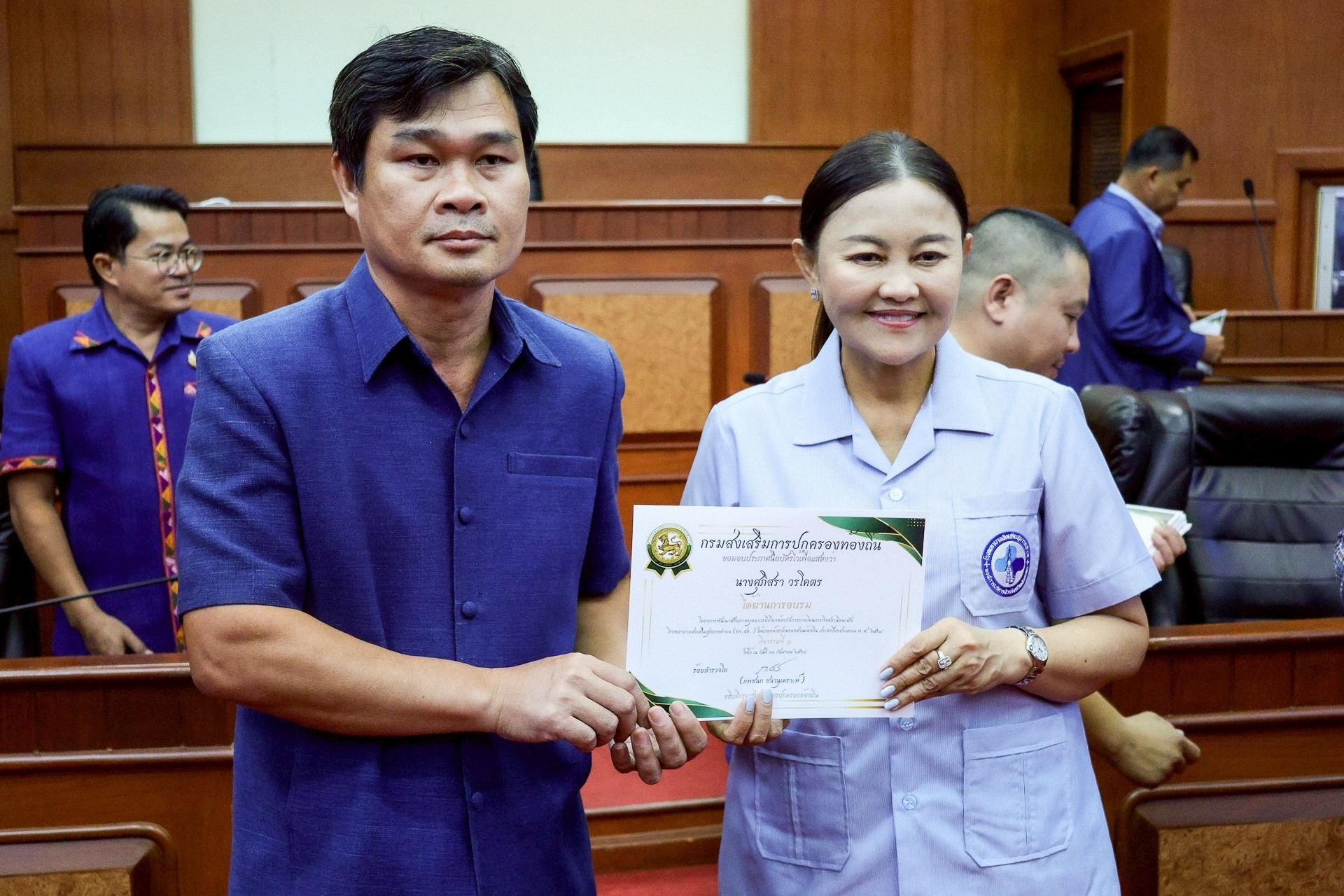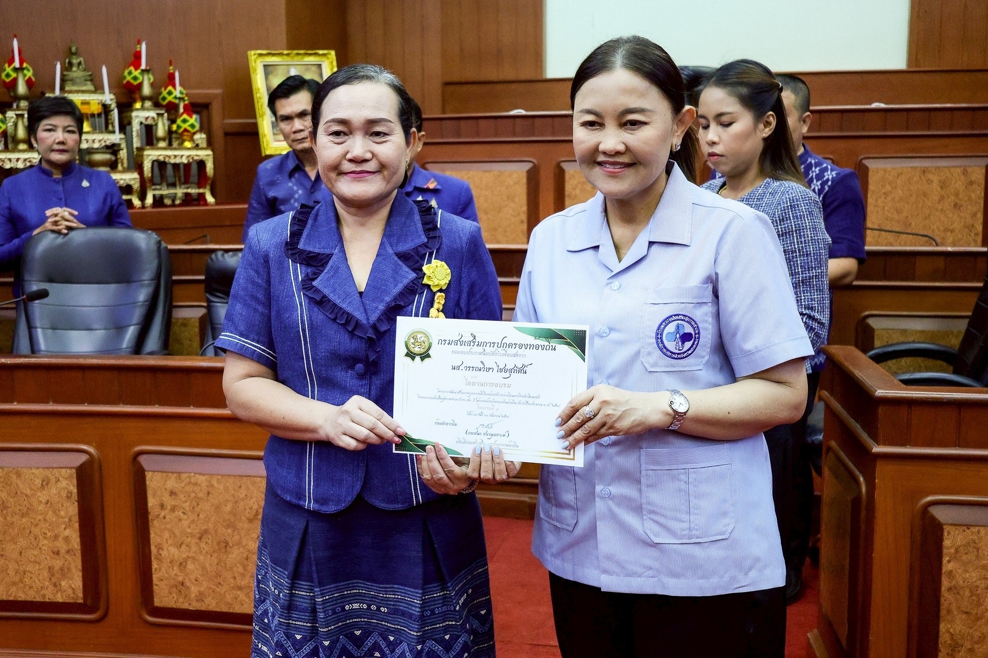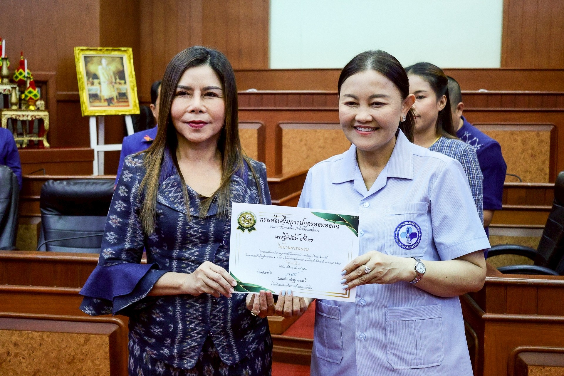 นางนฤมล สัพโส นายกองค์การบริหารส่วนจังหวัดสกลนคร เป็นประธานในพิธีมอบประกาศนียบัตรแก่ผู้เข้าร่วมอบรมโครงการพัฒนาคุณภาพชีวิตผู้สูงอายุขององค์กรปกครองส่วนท้องถิ่น ประจำปีงบประมาณ พ.ศ. 2568