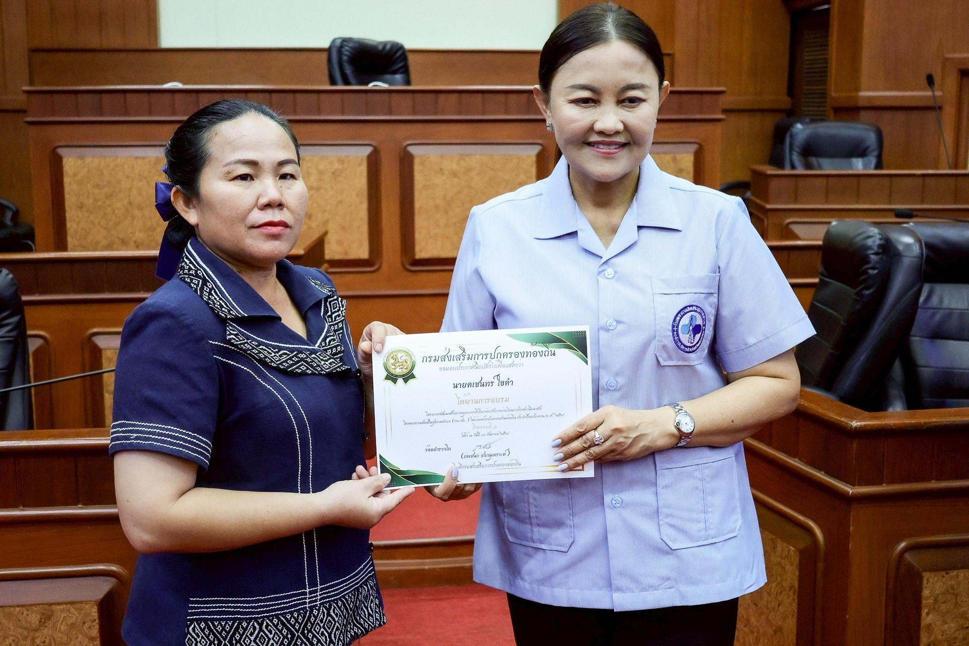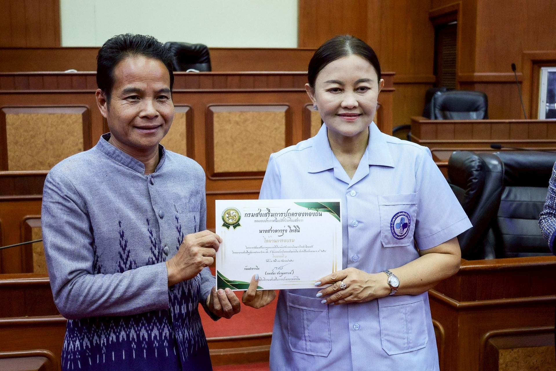 อบจ.สกลนคร มอบประกาศนียบัตรผู้เข้าร่วมอบรมโครงการพัฒนาคุณภาพชีวิตผู้สูงอายุ ประจำปี 2568