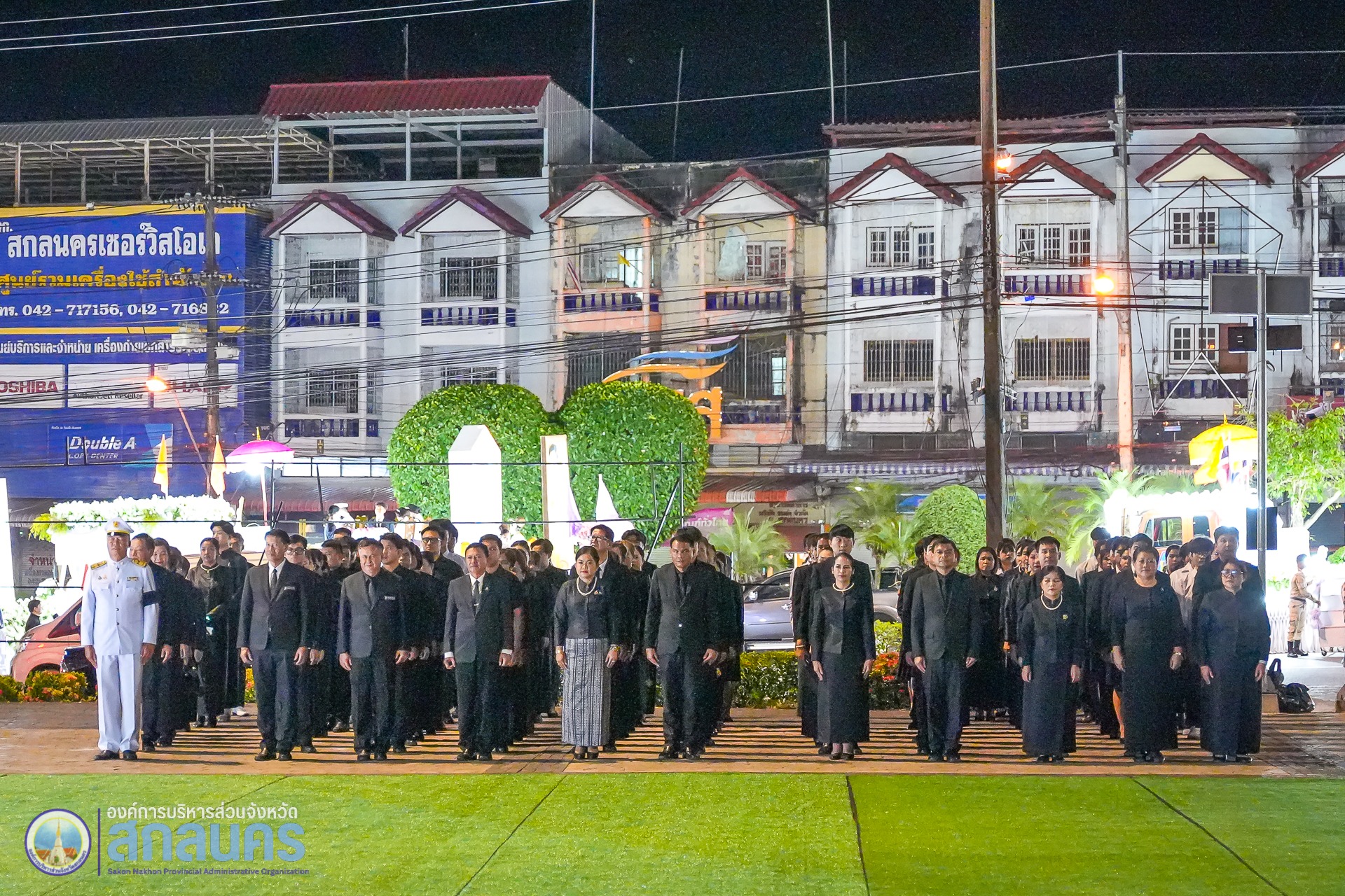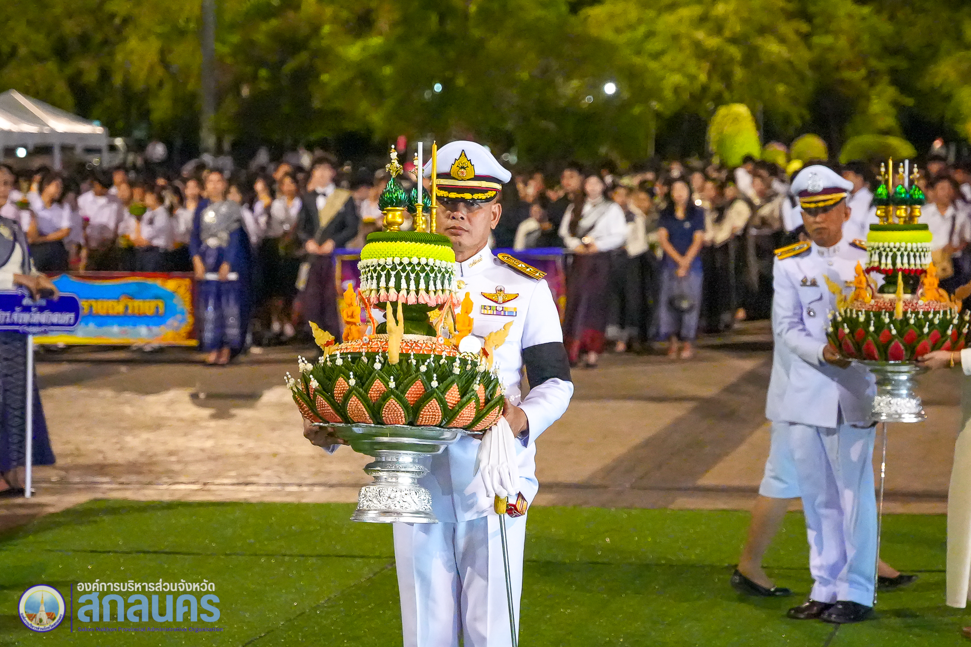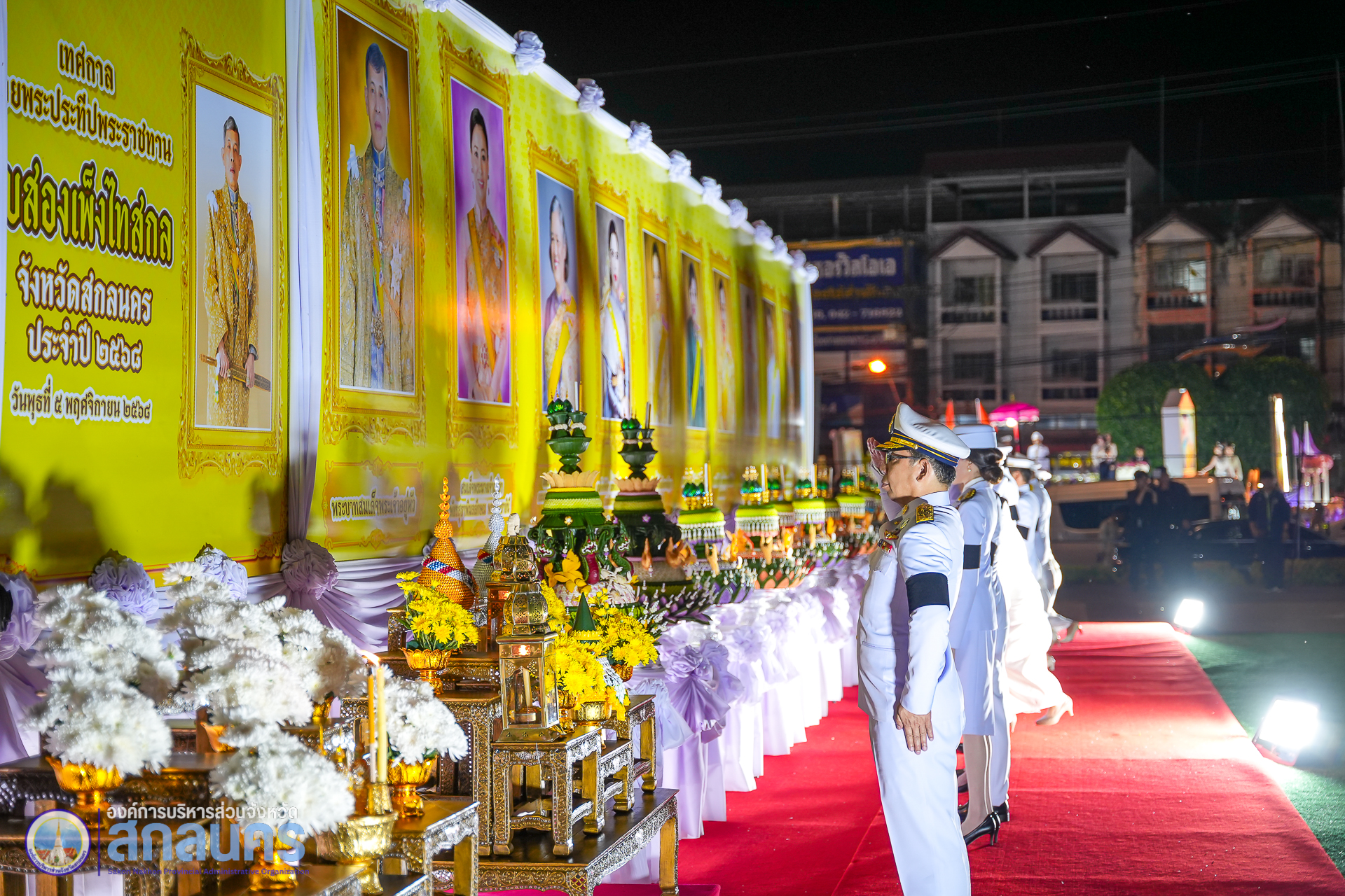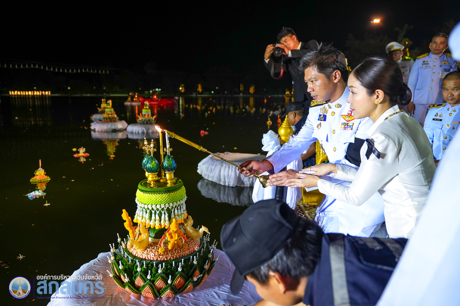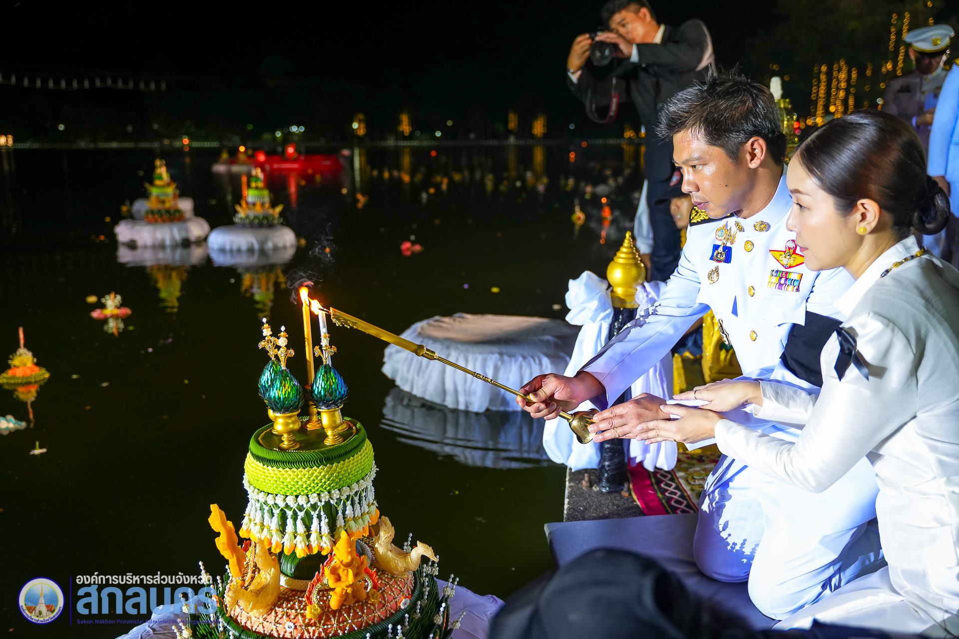 พิธีจัดขึ้น ณ ลานพระบรมราชานุสาวรีย์รัชกาลที่ ๕ และสวนสมเด็จพระศรีนครินทร์ (สระพังทอง) จังหวัดสกลนคร โดยมี นายชูศักดิ์ รู้ยิ่ง ผู้ว่าราชการจังหวัดสกลนคร เป็นประธานในพิธีเชิญพระประทีปพระราชทาน จากนั้น นายโกมุท ทีฆธนานนท์ นายกเทศมนตรีนครสกลนคร ได้อัญเชิญไฟพระฤกษ์ พร้อมด้วยรองผู้ว่าราชการจังหวัด ปลัดจังหวัด หัวหน้าส่วนราชการ ศาล ทหาร ตำรวจ องค์กรปกครองส่วนท้องถิ่น และสถานศึกษา ร่วมขบวนแห่ไฟพระฤกษ์พระราชทานไปยังสวนสมเด็จพระศรีนครินทร์ (สระพังทอง) เพื่อประกอบพิธีลอยพระประทีปพระราชทานอย่างสมพระเกียรติ