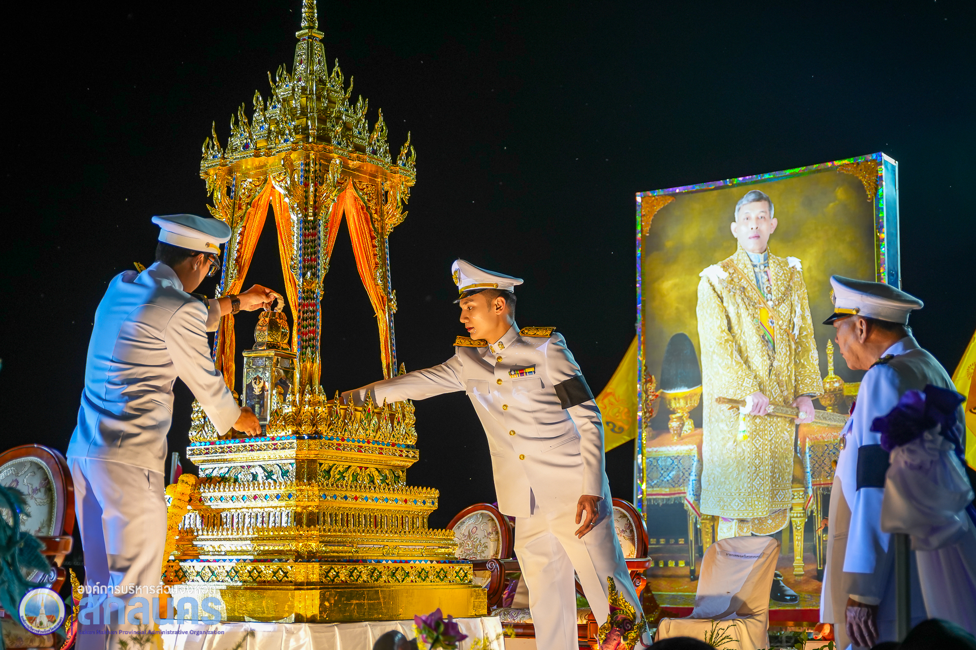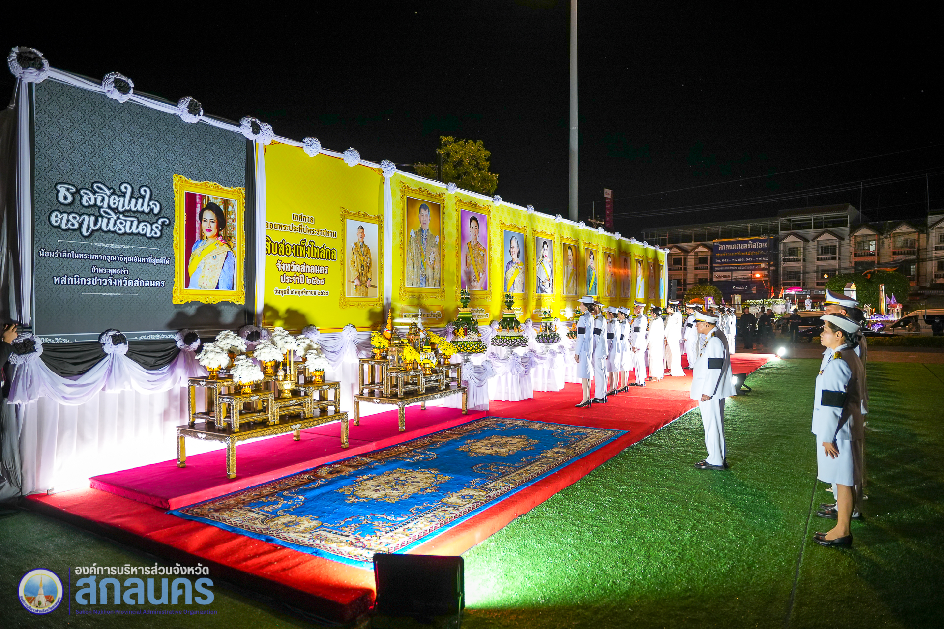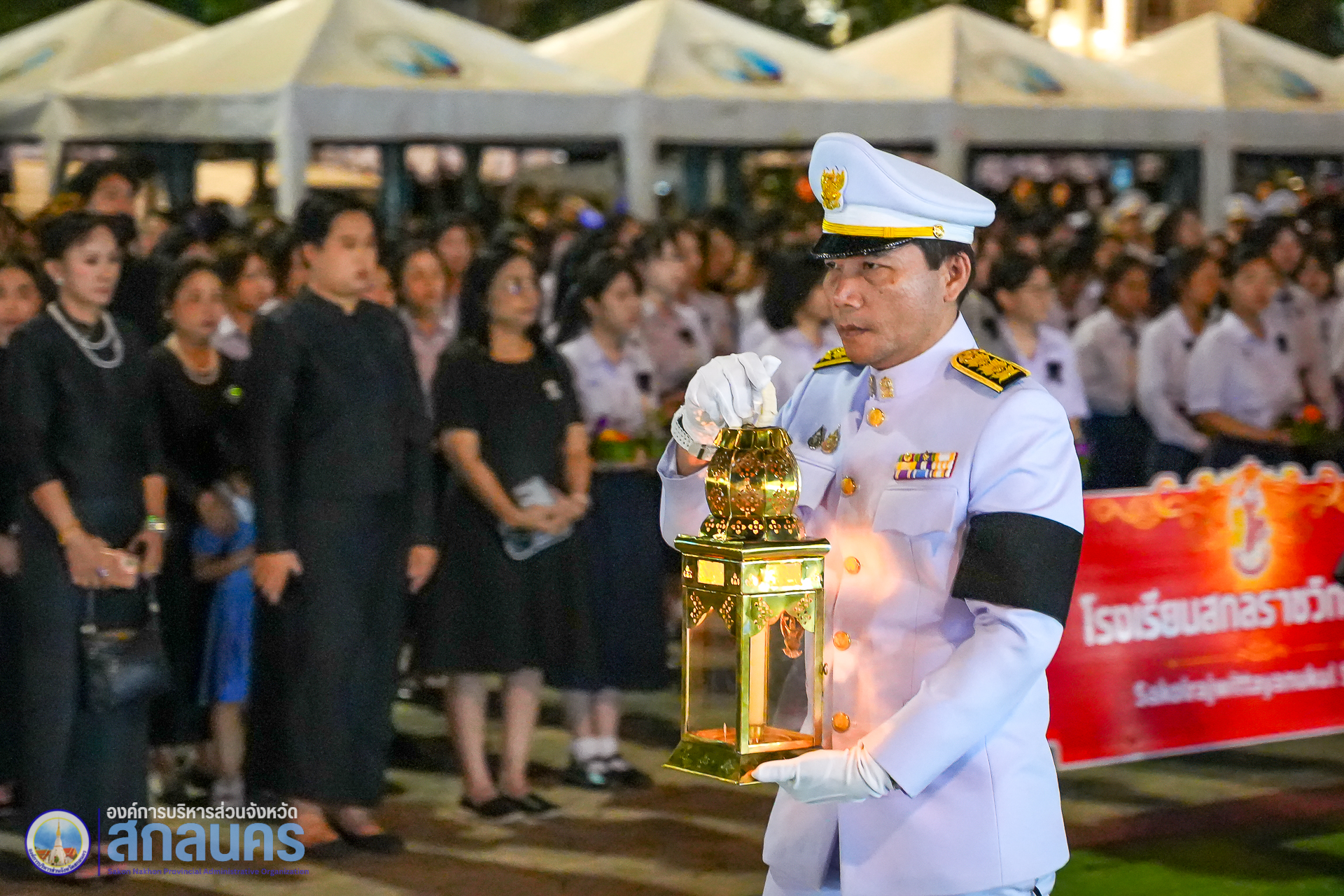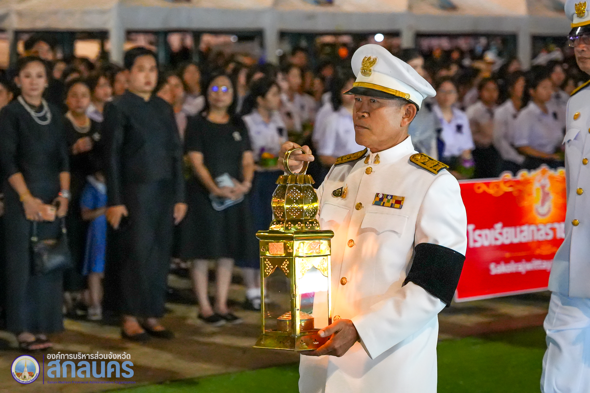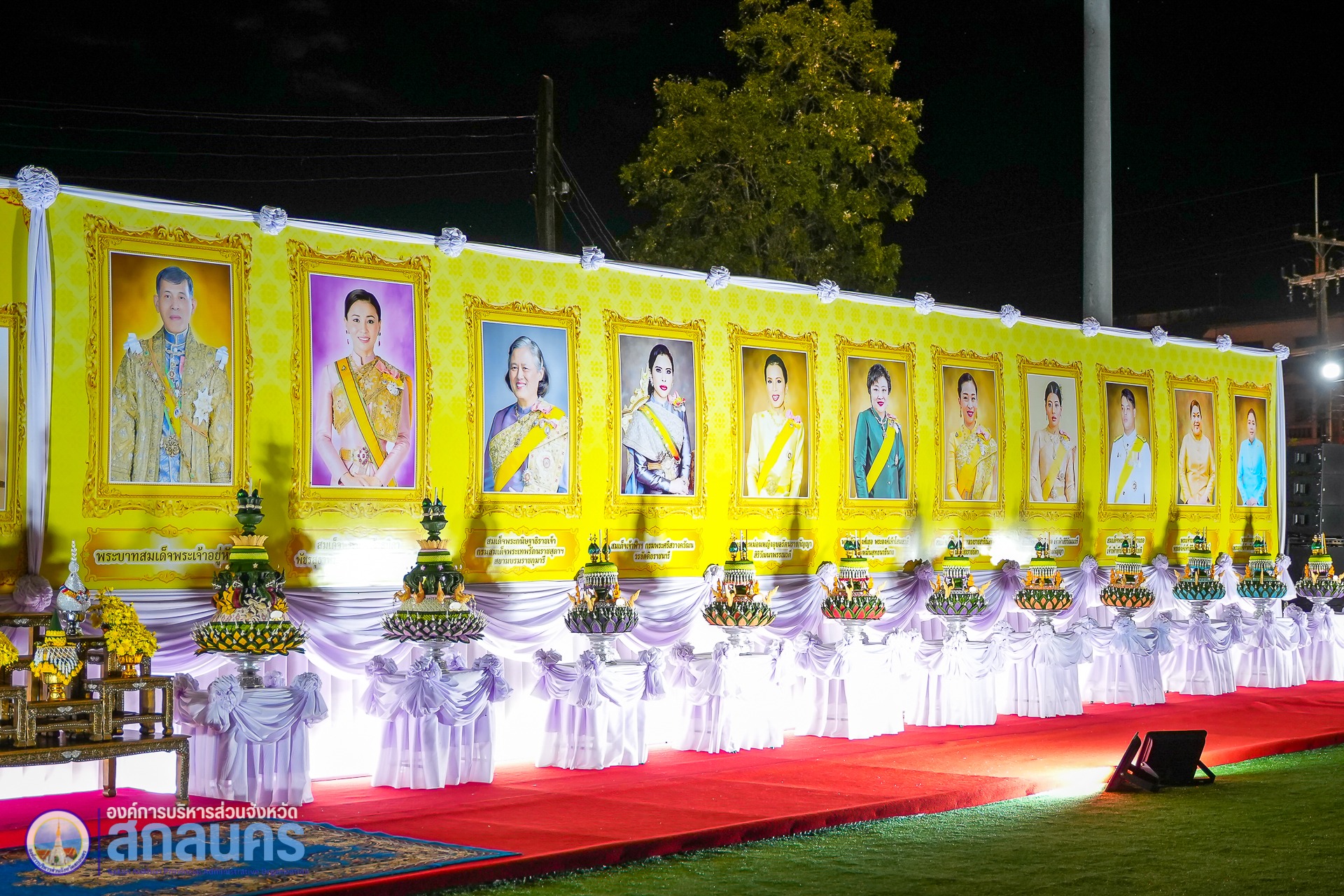 พิธีจัดขึ้น ณ ลานพระบรมราชานุสาวรีย์รัชกาลที่ ๕ และสวนสมเด็จพระศรีนครินทร์ (สระพังทอง) จังหวัดสกลนคร โดยมี นายชูศักดิ์ รู้ยิ่ง ผู้ว่าราชการจังหวัดสกลนคร เป็นประธานในพิธีเชิญพระประทีปพระราชทาน จากนั้น นายโกมุท ทีฆธนานนท์ นายกเทศมนตรีนครสกลนคร ได้อัญเชิญไฟพระฤกษ์ พร้อมด้วยรองผู้ว่าราชการจังหวัด ปลัดจังหวัด หัวหน้าส่วนราชการ ศาล ทหาร ตำรวจ องค์กรปกครองส่วนท้องถิ่น และสถานศึกษา ร่วมขบวนแห่ไฟพระฤกษ์พระราชทานไปยังสวนสมเด็จพระศรีนครินทร์ (สระพังทอง) เพื่อประกอบพิธีลอยพระประทีปพระราชทานอย่างสมพระเกียรติ