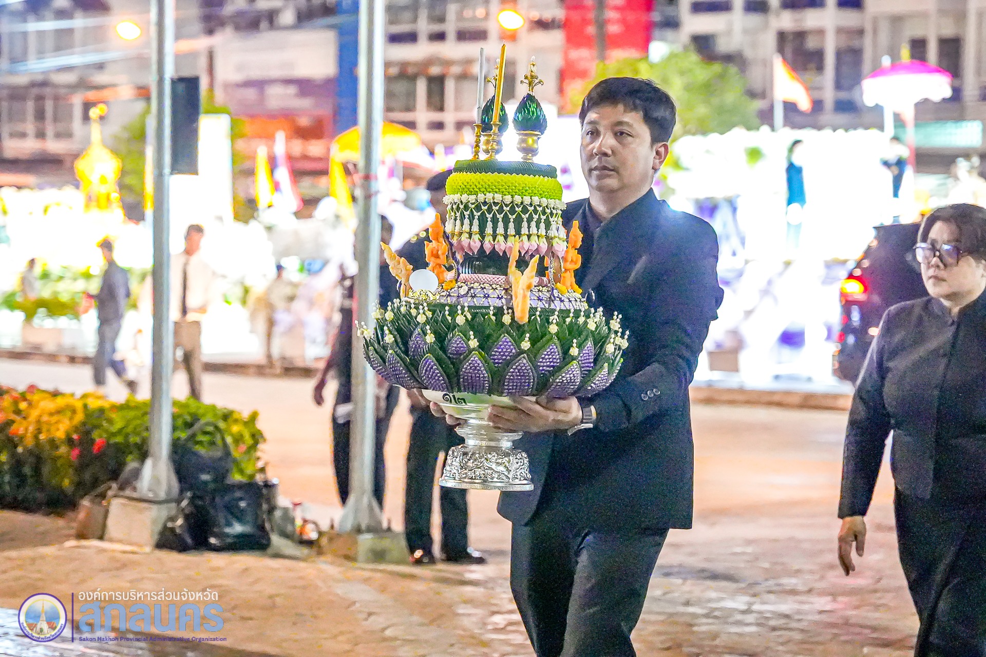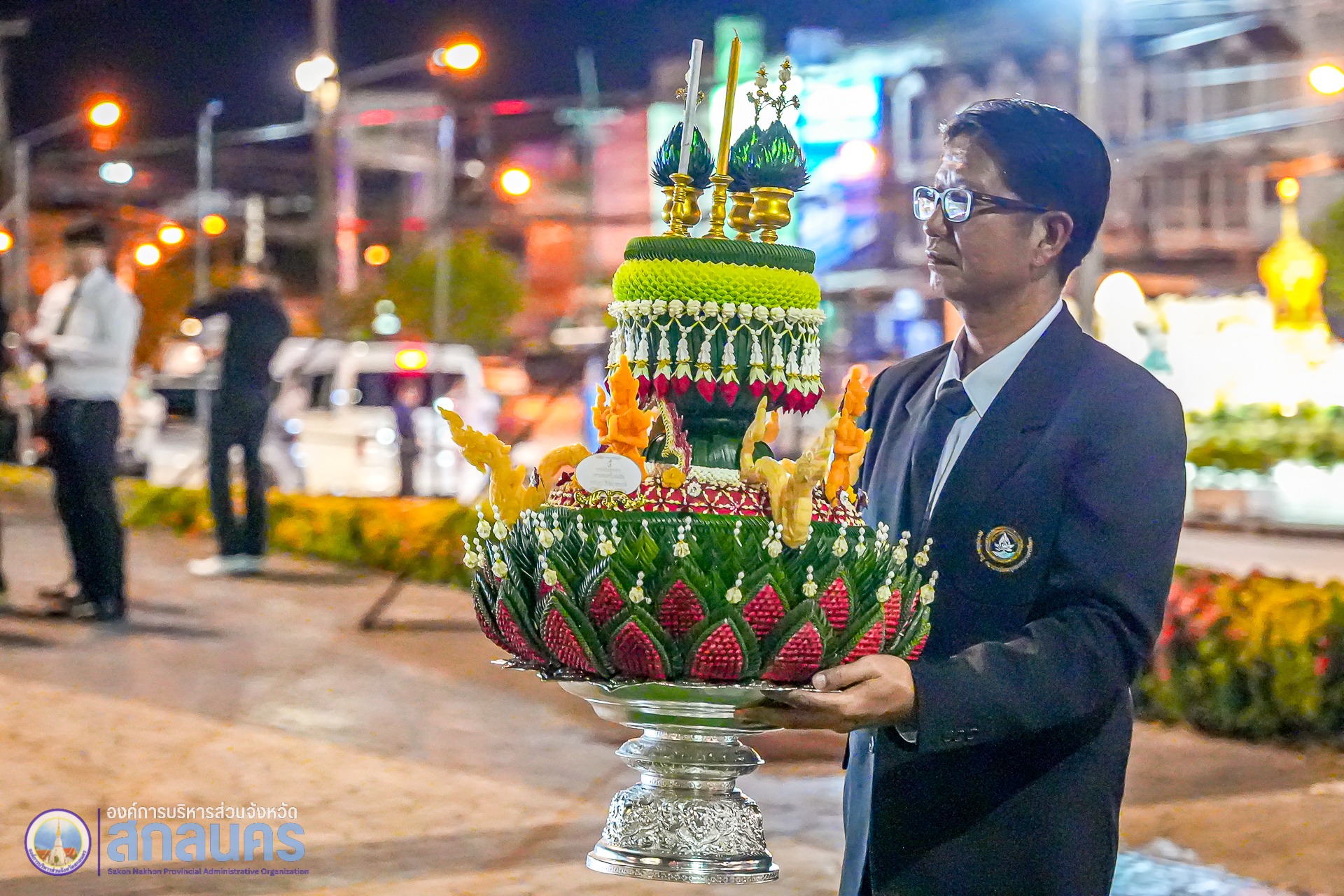 องค์การบริหารส่วนจังหวัดสกลนคร โดย นางนฤมล สัพโส นายกองค์การบริหารส่วนจังหวัดสกลนคร มอบหมายให้ นายพินิตเมธ ทีฆธนานนท์ รองนายกองค์การบริหารส่วนจังหวัดสกลนคร พร้อมด้วย จ่าเอกพิทักษ์ ศรีสวัสดิ์ ผู้อำนวยการกองการเจ้าหน้าที่ และนางจันทร์จิรา วงษ์รัตนะ หัวหน้าฝ่ายสรรหาและบรรจุแต่งตั้ง กองการเจ้าหน้าที่ เข้าร่วมพิธีเชิญพระประทีปพระราชทานและลอยลงสู่สระพังทอง ในงานเทศกาลลอยพระประทีปพระราชทาน “สิบสองเพ็งไทสกล” จังหวัดสกลนคร ประจำปี ๒๕๖๘