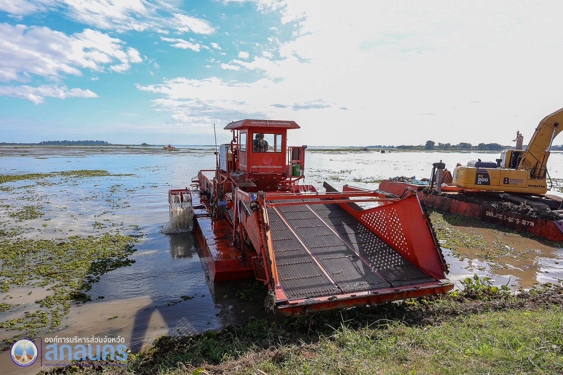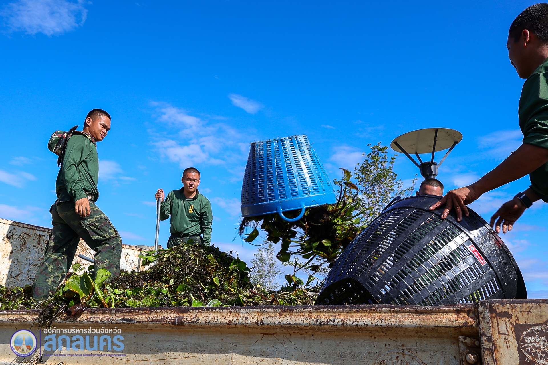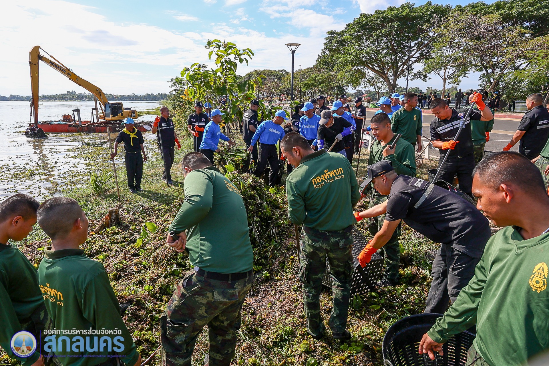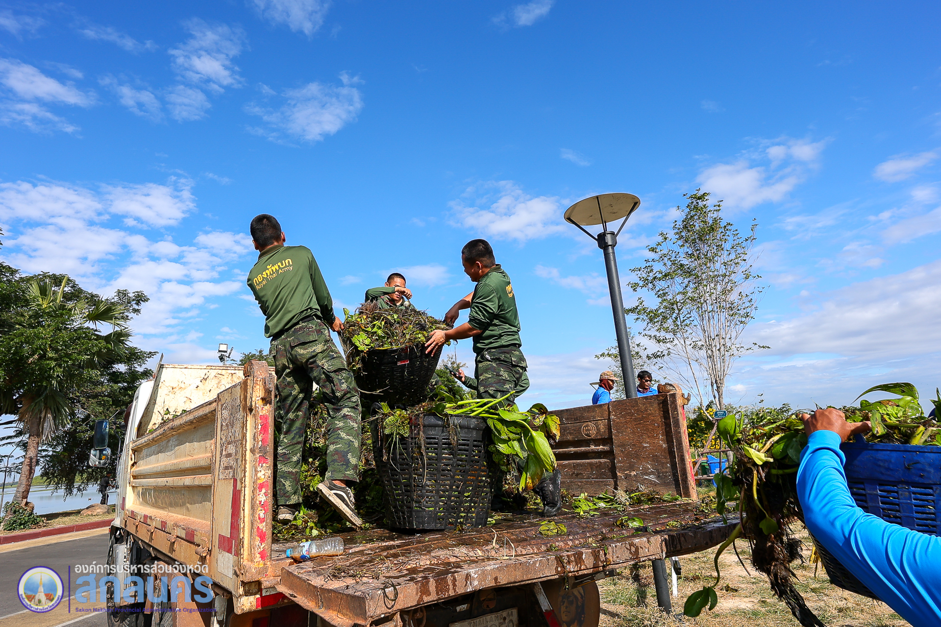 อบจ.สกลนคร ร่วม Kick Off “12.12 Sakonnakhon Go Clean & Green” ลงพื้นที่เก็บวัชพืชหนองหาร