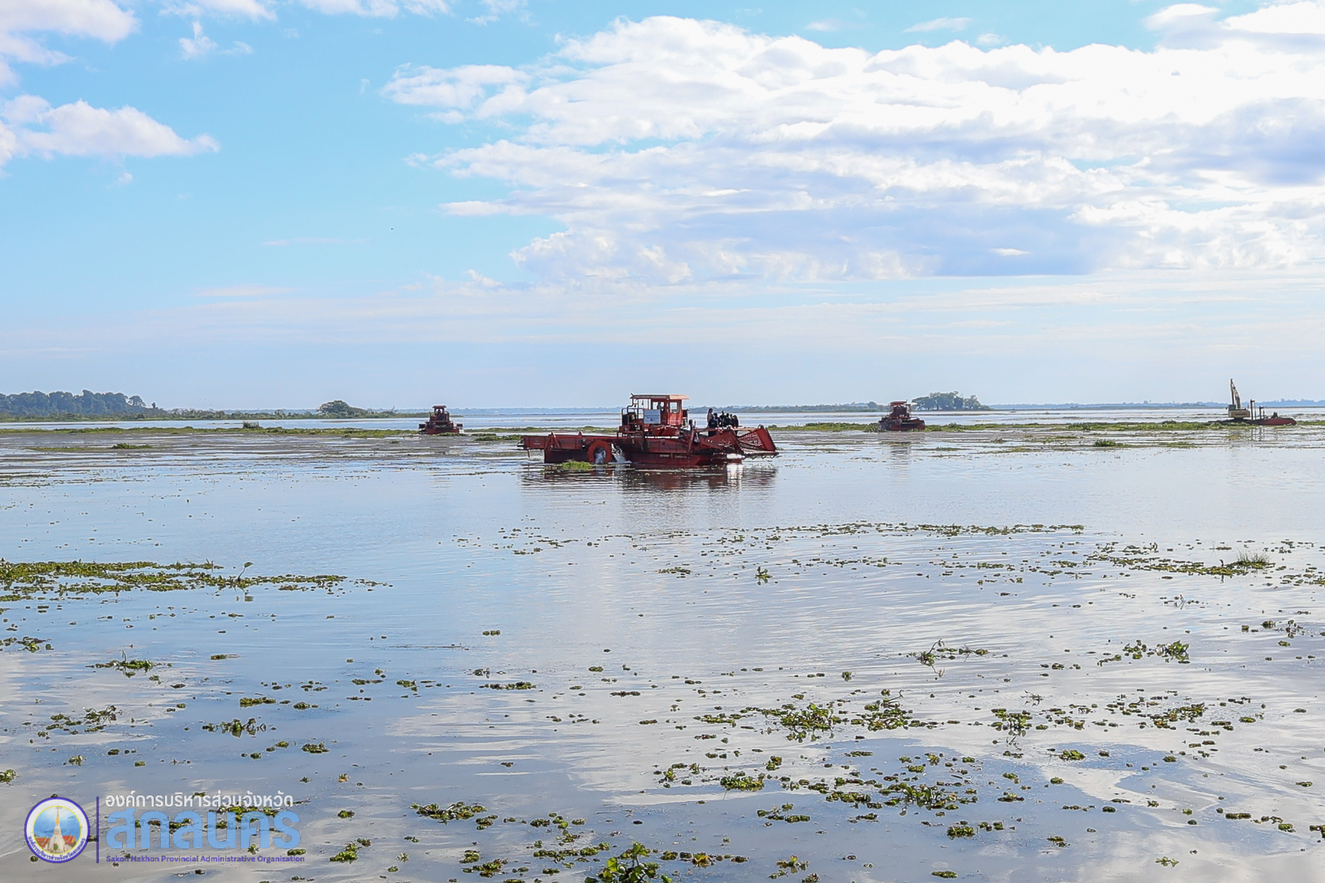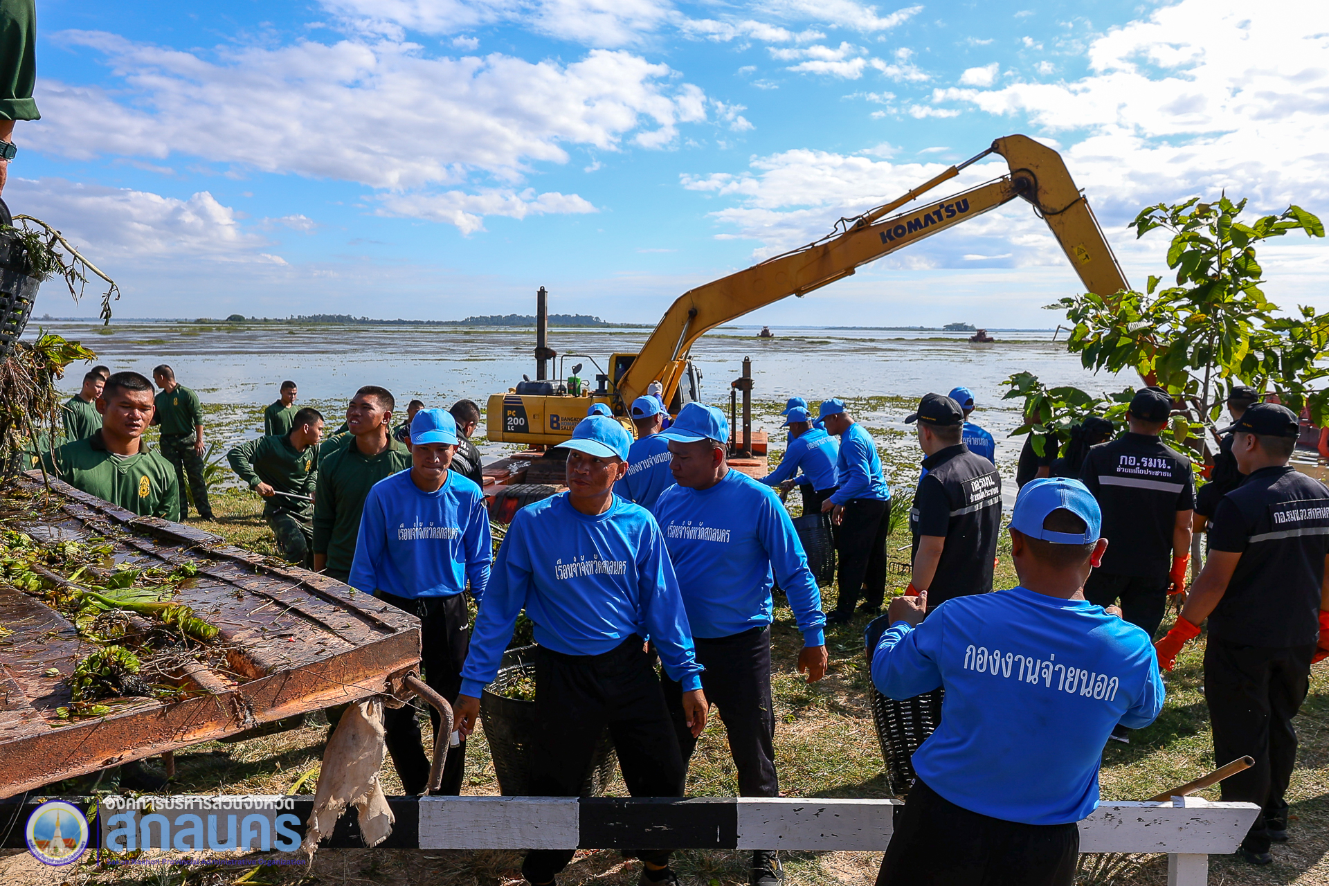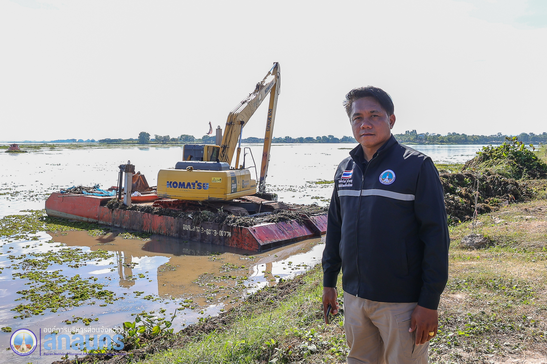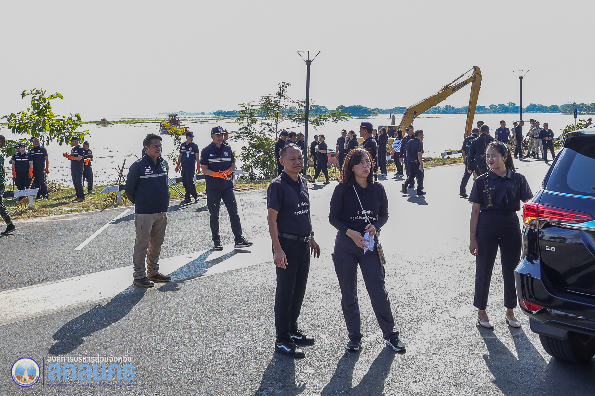 อบจ.สกลนคร ร่วม Kick Off “12.12 Sakonnakhon Go Clean & Green” ลงพื้นที่เก็บวัชพืชหนองหาร