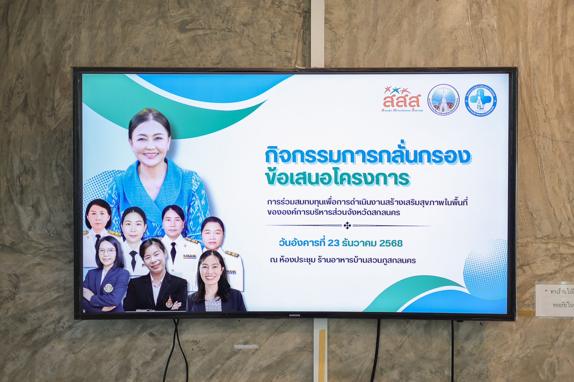 องค์การบริหารส่วนจังหวัดสกลนคร โดย กองสาธารณสุข ดำเนินการจัดกิจกรรมกลั่นกรองข้อเสนอโครงการการร่วมสมทบทุนเพื่อการดำเนินงานด้านการสร้างเสริมสุขภาพในพื้นที่จังหวัดสกลนคร เพื่อพิจารณาให้ความเห็นชอบต่อข้อเสนอโครงการ พร้อมทั้งให้ข้อเสนอแนะและแนวทางในการปรับปรุงข้อเสนอโครงการให้มีความครบถ้วน ถูกต้อง และมีคุณภาพ เป็นไปตามแนวทางและเงื่อนไขการสนับสนุนทุนอย่างเหมาะสม