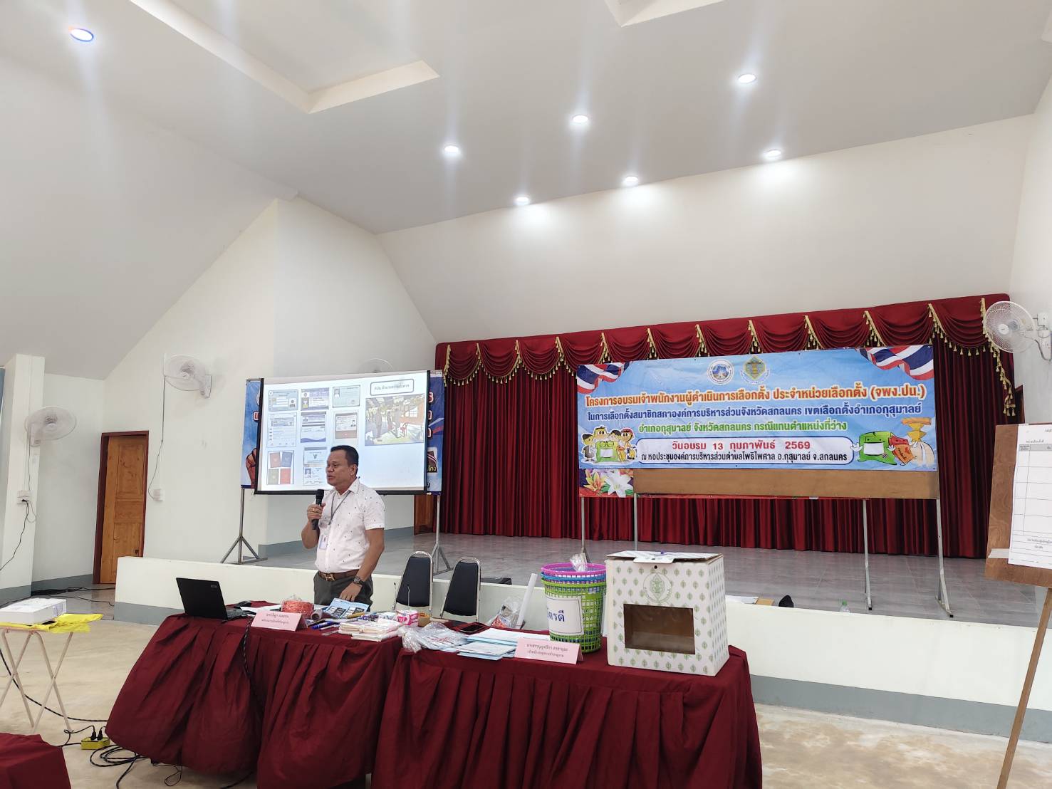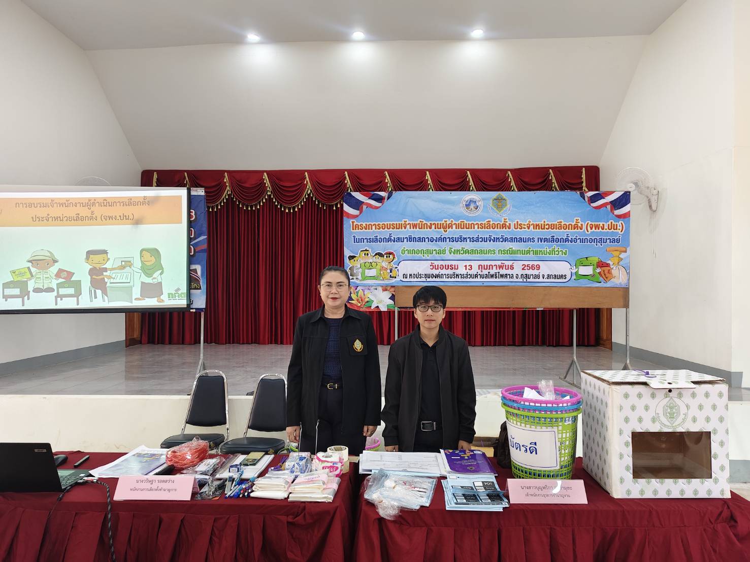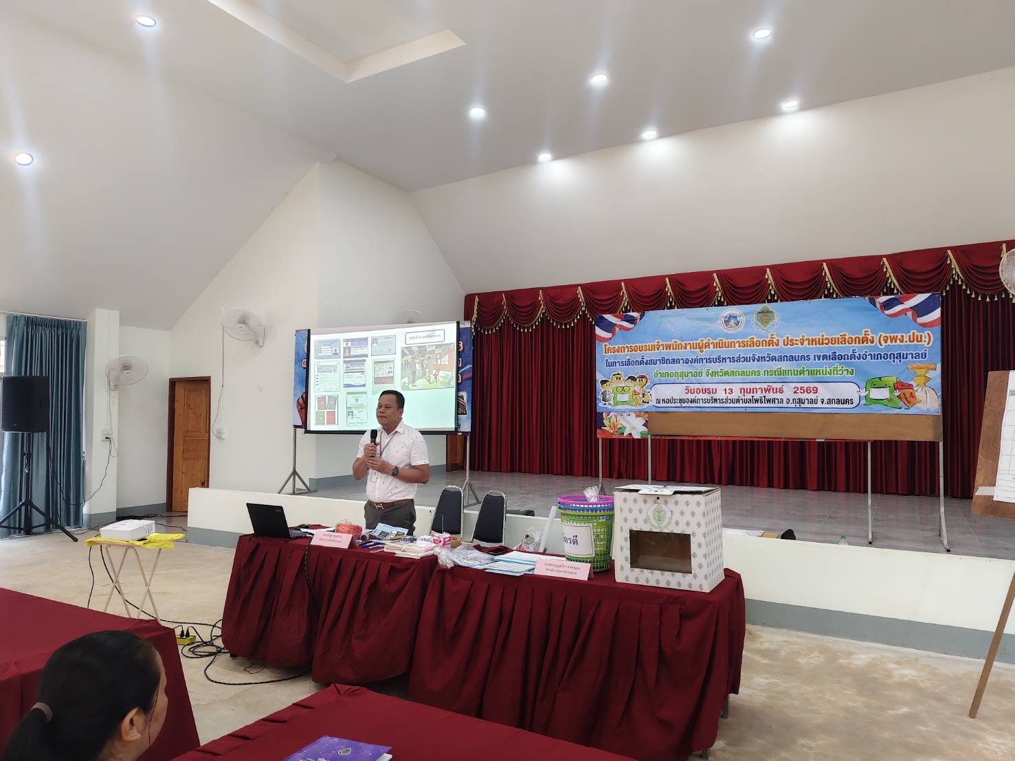 องค์การบริหารส่วนจังหวัดสกลนคร โดย สำนักปลัดองค์การบริหารส่วนจังหวัด จัดโครงการอบรมเจ้าพนักงานผู้ดำเนินการเลือกตั้งประจำหน่วยเลือกตั้ง เพื่อเตรียมความพร้อมสำหรับการเลือกตั้งสมาชิกสภาองค์การบริหารส่วนจังหวัดสกลนคร (เขตเลือกตั้งอำเภอกุสุมาลย์) ในวันที่ 15 กุมภาพันธ์ 2569 กรณีแทนตำแหน่งที่ว่าง ณ หอประชุมองค์การบริหารส่วนตำบลโพธิไพศาล อำเภอกุสุมาลย์ จังหวัดสกลนคร